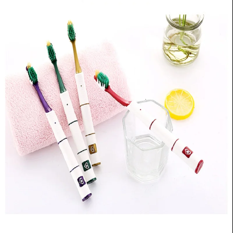 4pcs/Pack Bamboo Charcoal Toothbrush Nano Toothbrush Medium Hard Heads Dental Teeth Tooth Brush Ultra Whitening for Adult Family