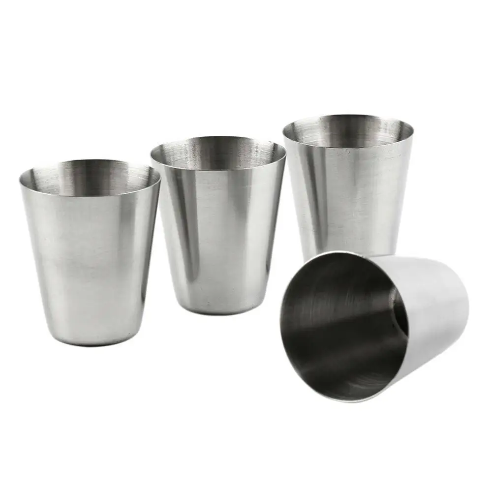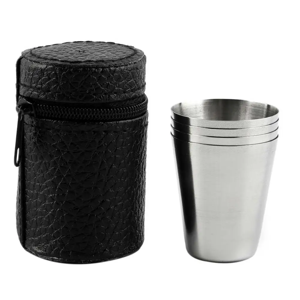 4pcs/set 30ml Folding Wine Cups Outdoors Portable Stainless Steel 1oz Wine Cup with Cup Case Whiskey Cups for Outdoor Travel