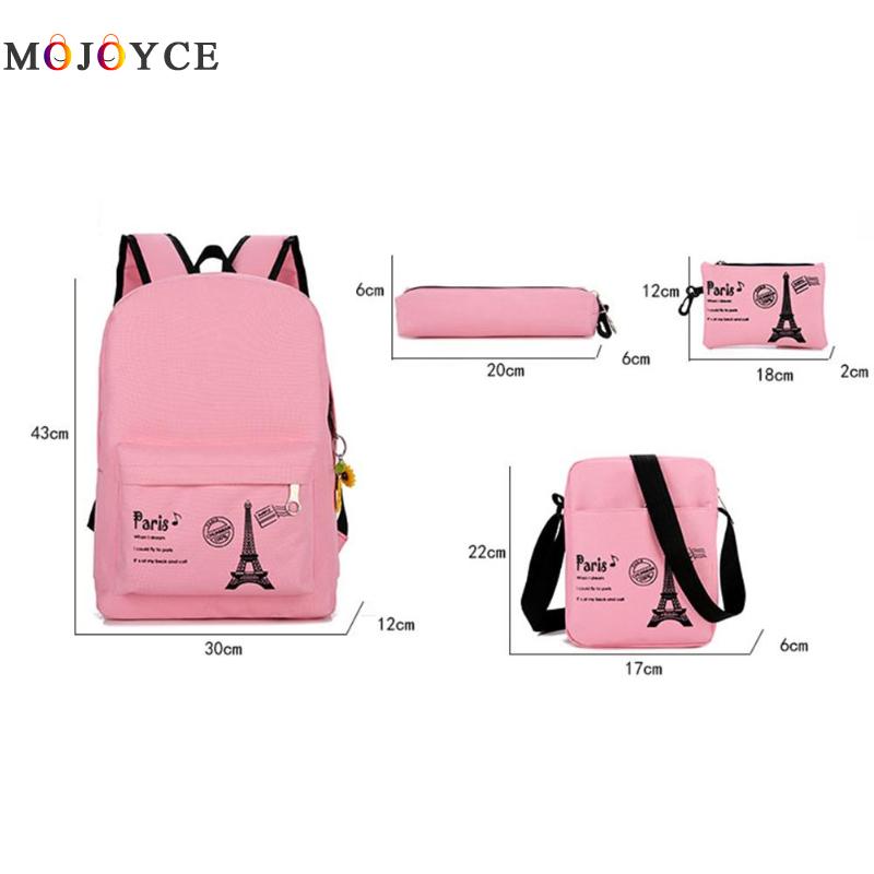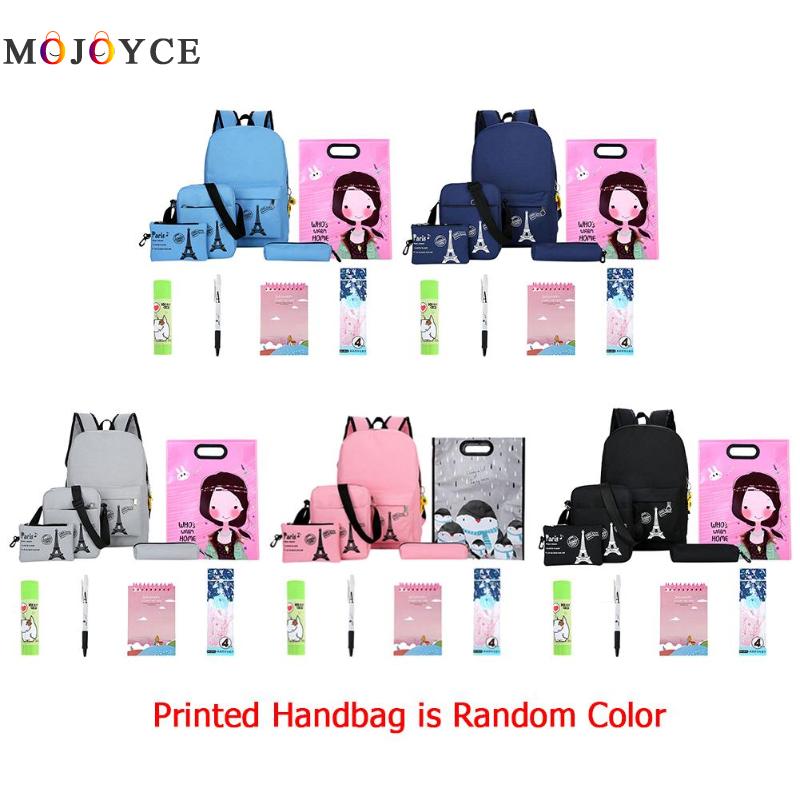 10pcs/Set Casual Women Canvas Iron Tower Printed Backpacks Teen Girls School Composite Shoulder Bags