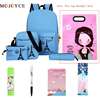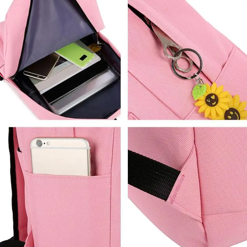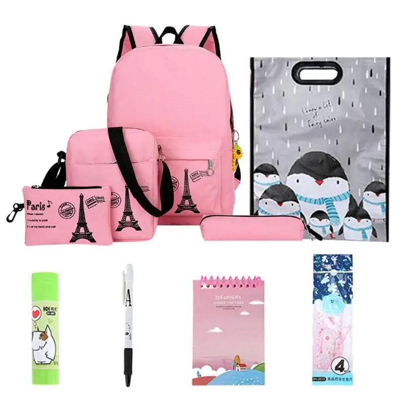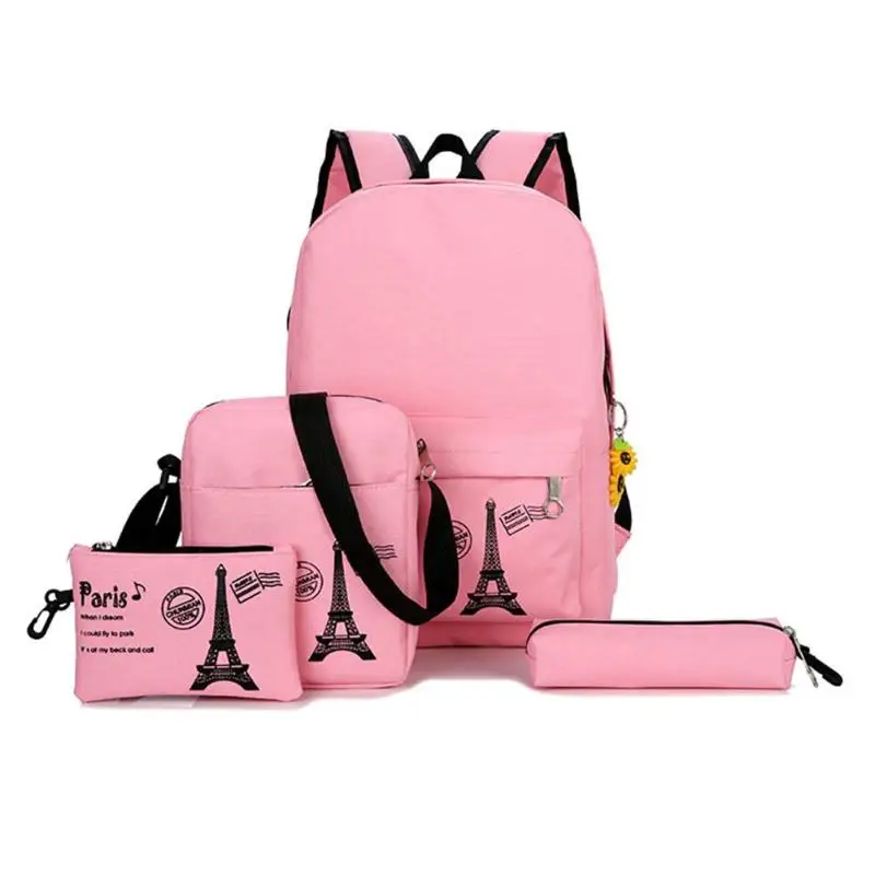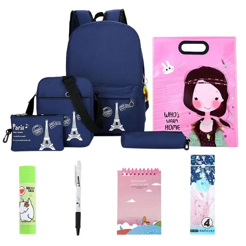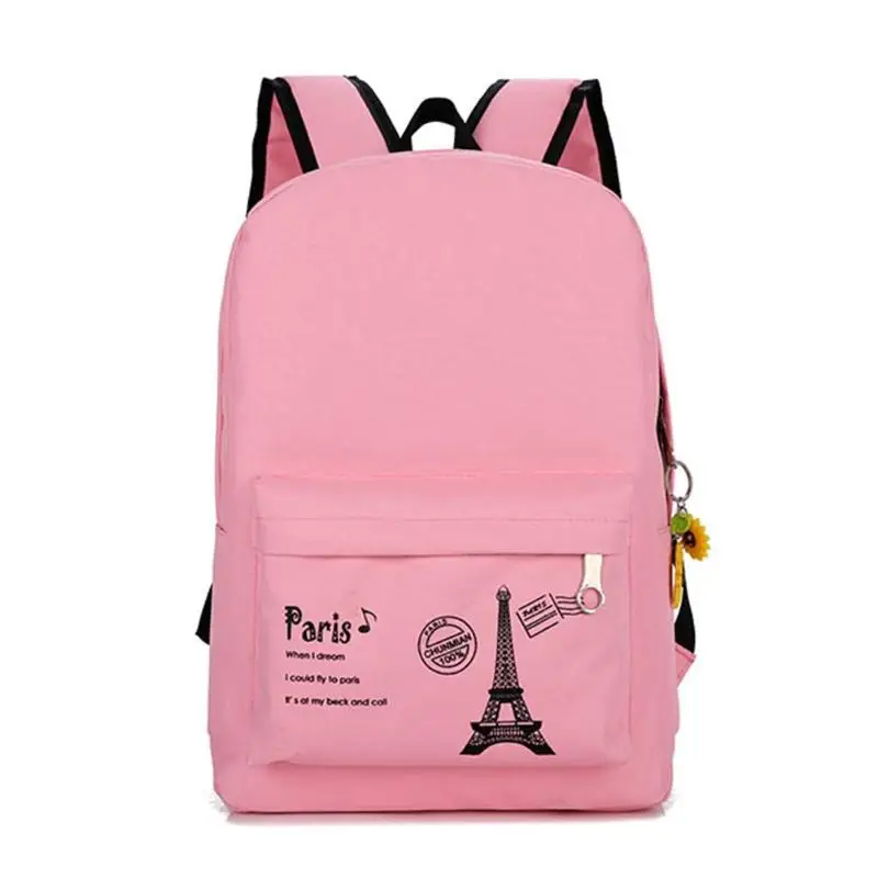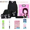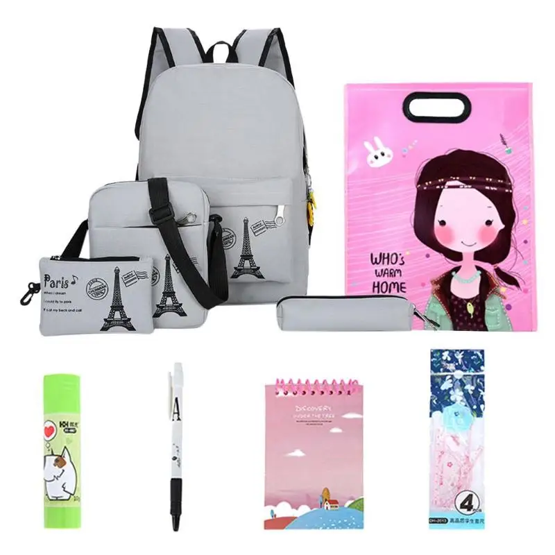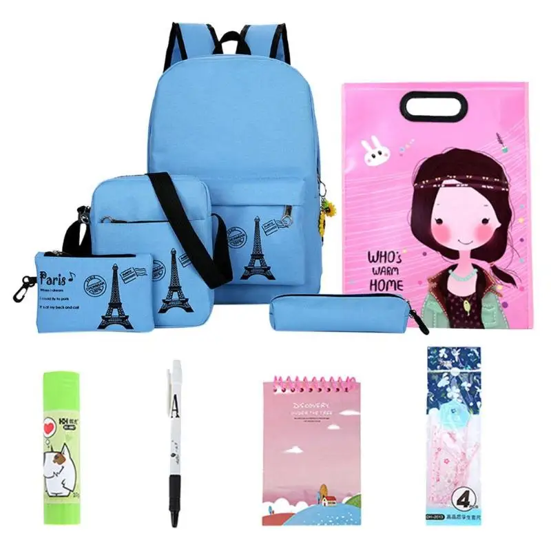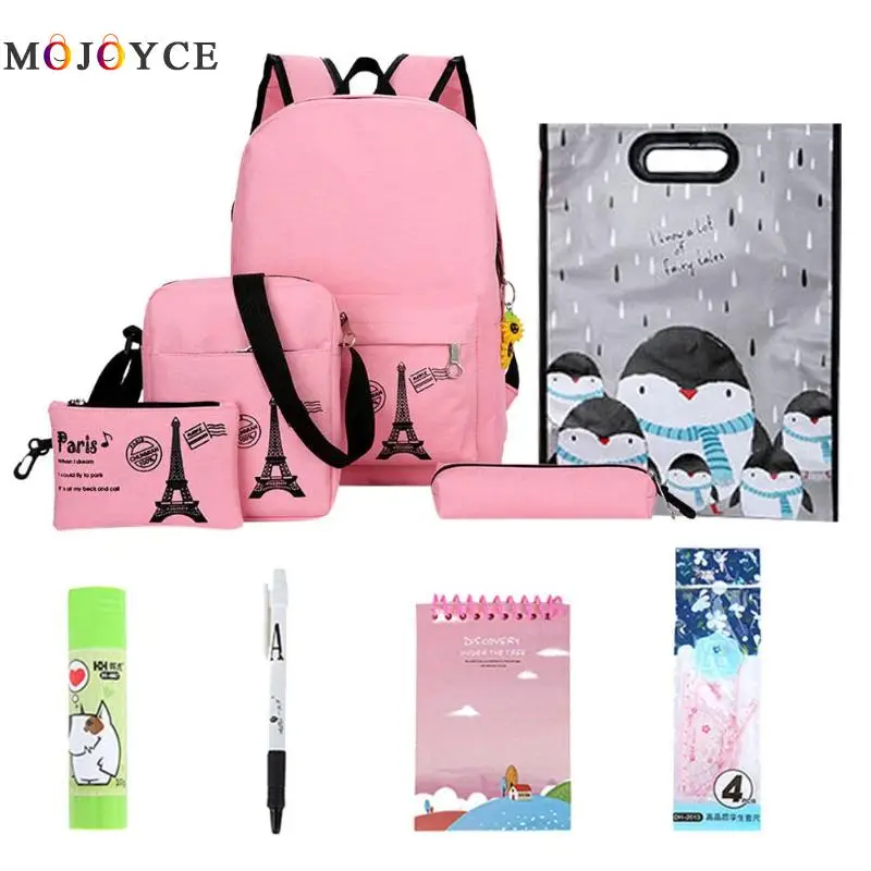 10pcs/Set Casual Women Canvas Iron Tower Printed Backpacks Teen Girls School Composite Shoulder Bags