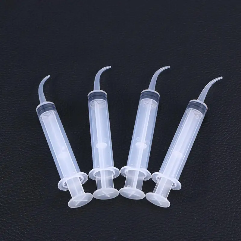 4pcs Disposable Dental Irrigation Syringe with Curved Tip for Dental Care