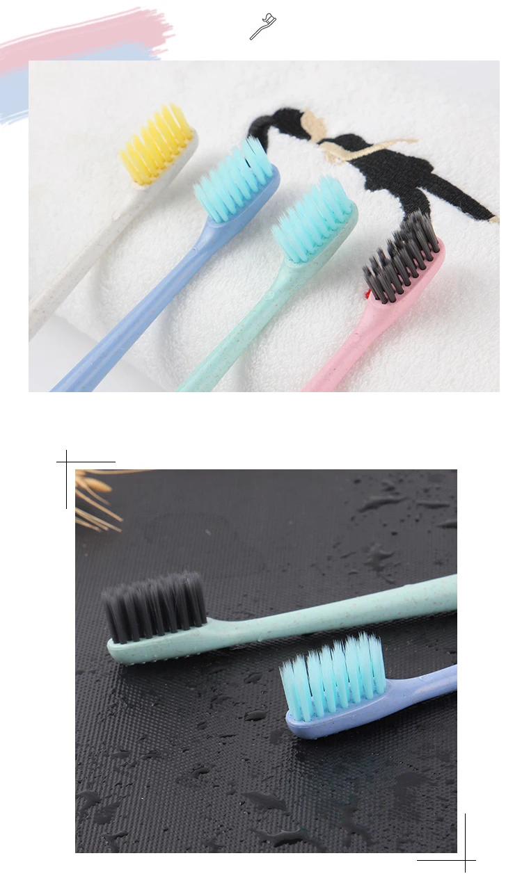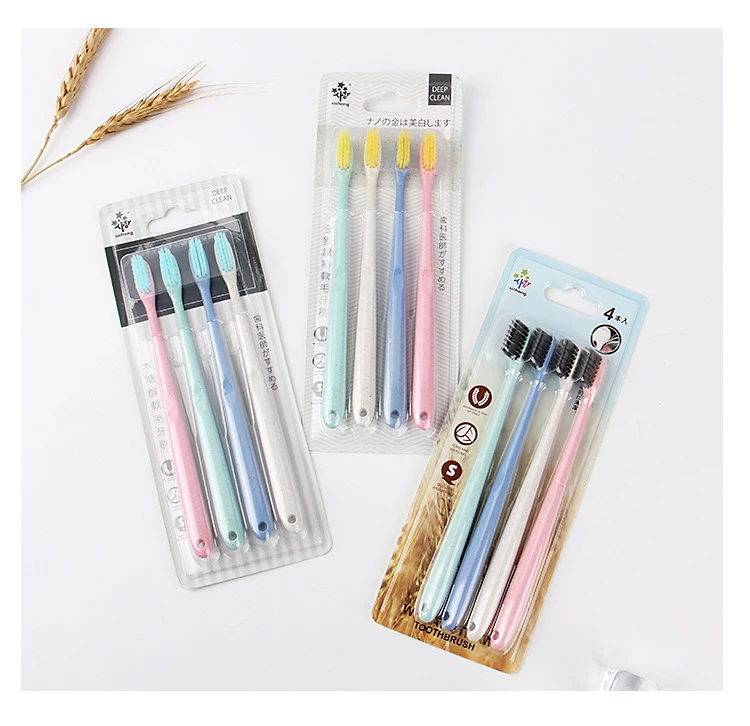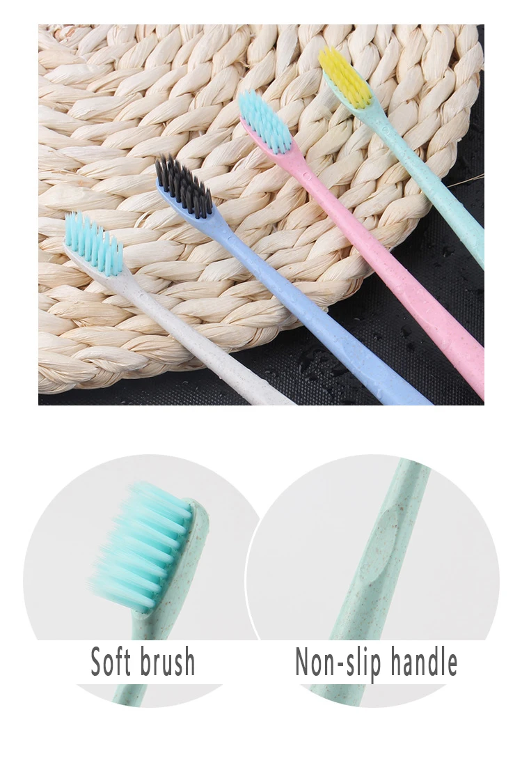 4Pcs Wheat Straw Toothbrush Soft Hair Small Head Fine Hair Toothbrush Home Oral Hygiene Adult Toothbrush Support Wholesale