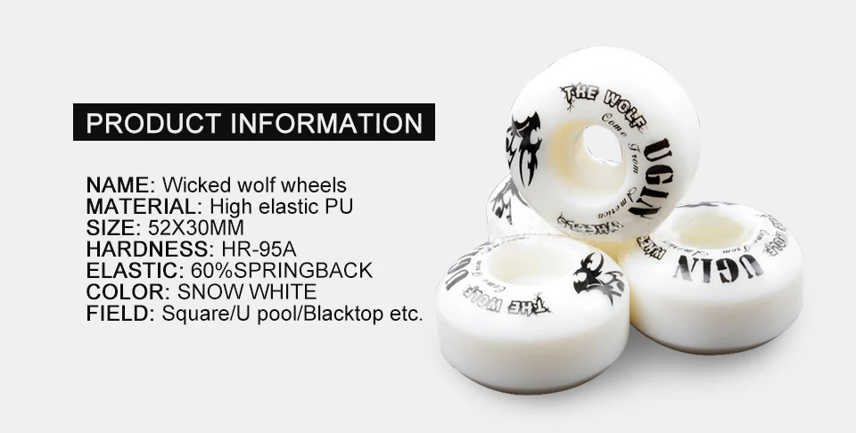4X UGIN Classic The Wolf Series Pro Skateboard Wheels 52mm x 30mm Resilient PU for rough grounds asphalt road half-pipe etc