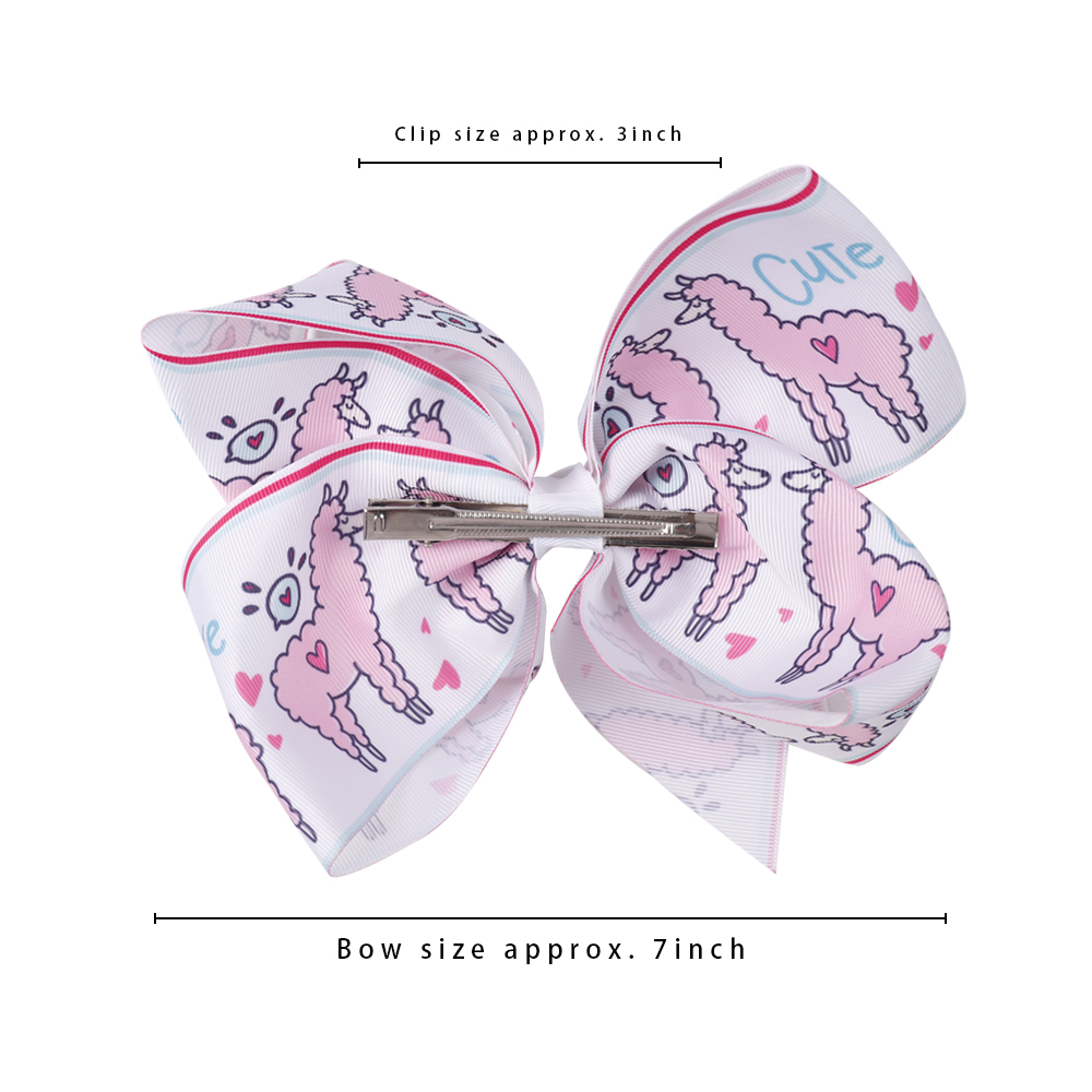 Product Name:5 Colors 10 Pcs Large Cartoon Alpaca Hair Bows With Clips For Girls Kids Cute Sheep Rainbow Printed Knot Bow Hair Accessories.