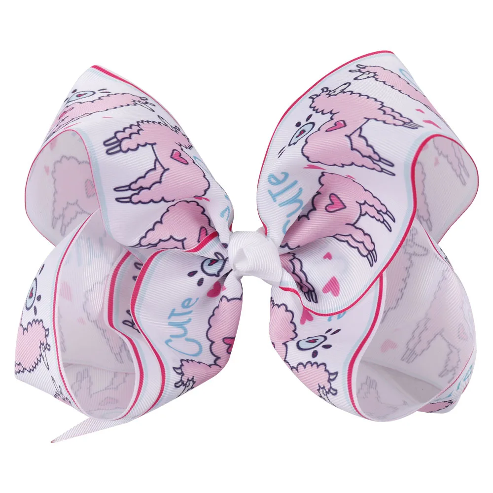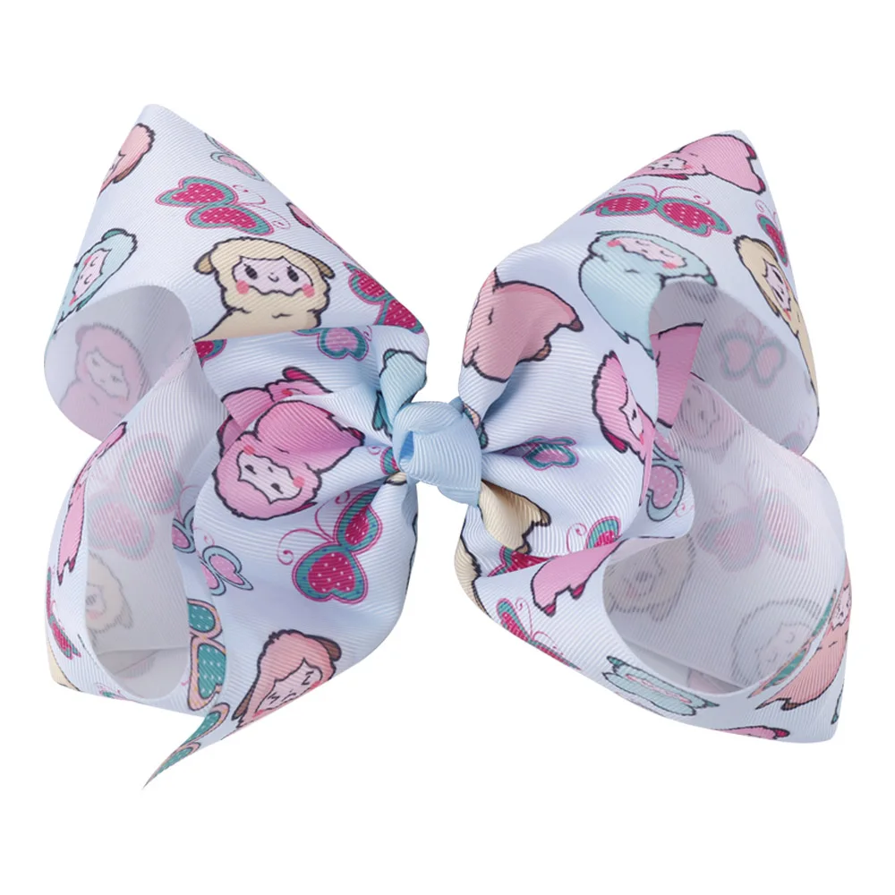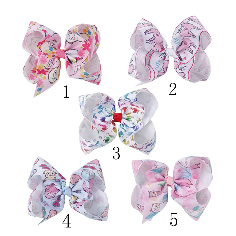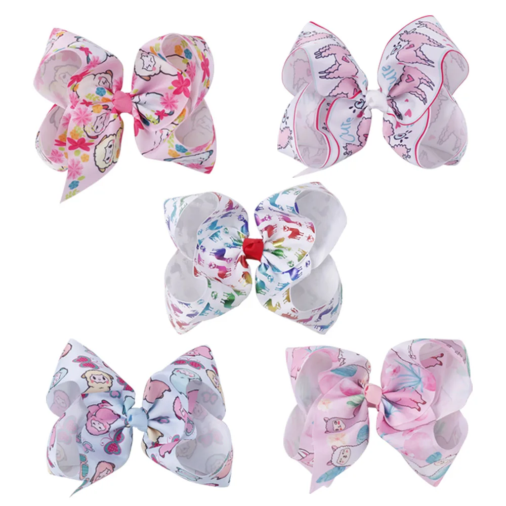 Product Name:5 Colors 10 Pcs Large Cartoon Alpaca Hair Bows With Clips For Girls Kids Cute Sheep Rainbow Printed Knot Bow Hair Accessories.