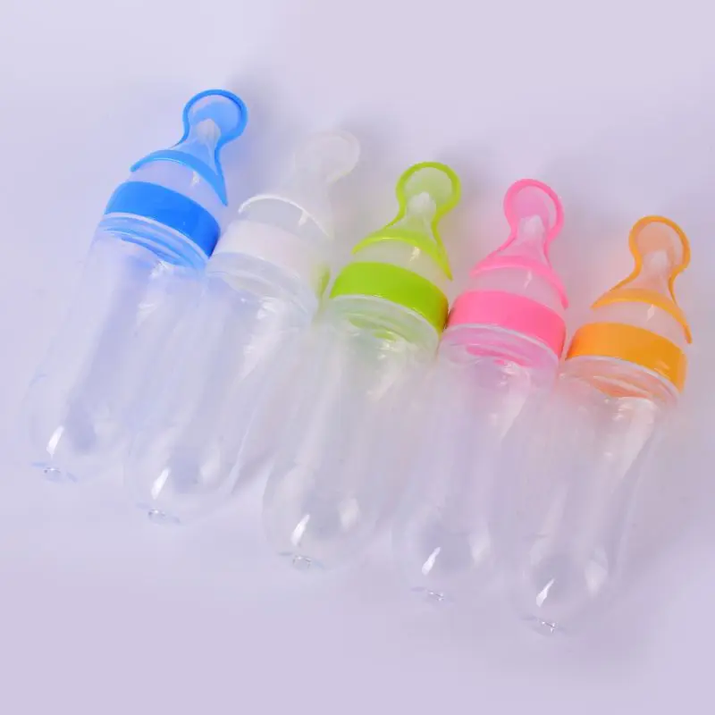Newest Candy Color Infant Silica Gel Feeding Bottle With Spoon Food Supplement Rice Cereal Bottle