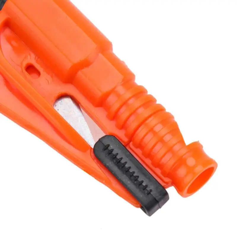 2. Cut the seat belt: pull out the escape device quickly from the key chain, then pull out the buckle, align the blade to the seat belt, cut it off quickly, and get out of the emergency