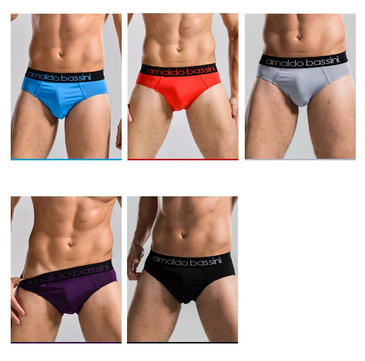 5 Colors Super Quality Brand Panties Mens Underpants Flexible Slips Briefs Solid Arnaldo Bassini Underwear Men Black Blue