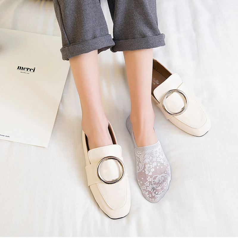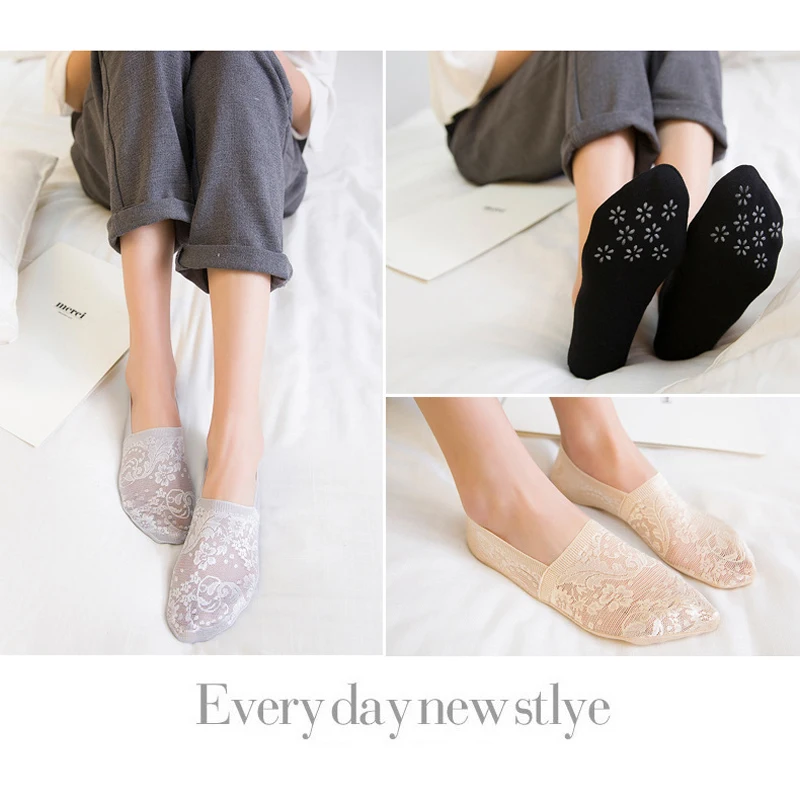 5 Pair Womens Lace Invisible Boat Socks Breathable Elastic Short Female Socks Summer Spring Low Cut Anti-Slip Sock Slippers