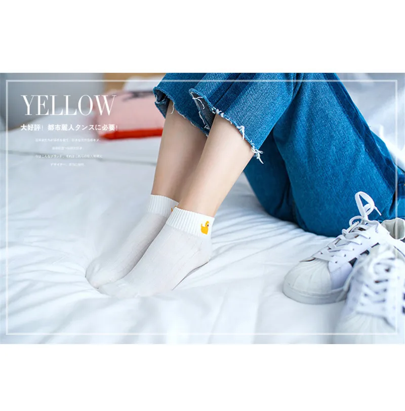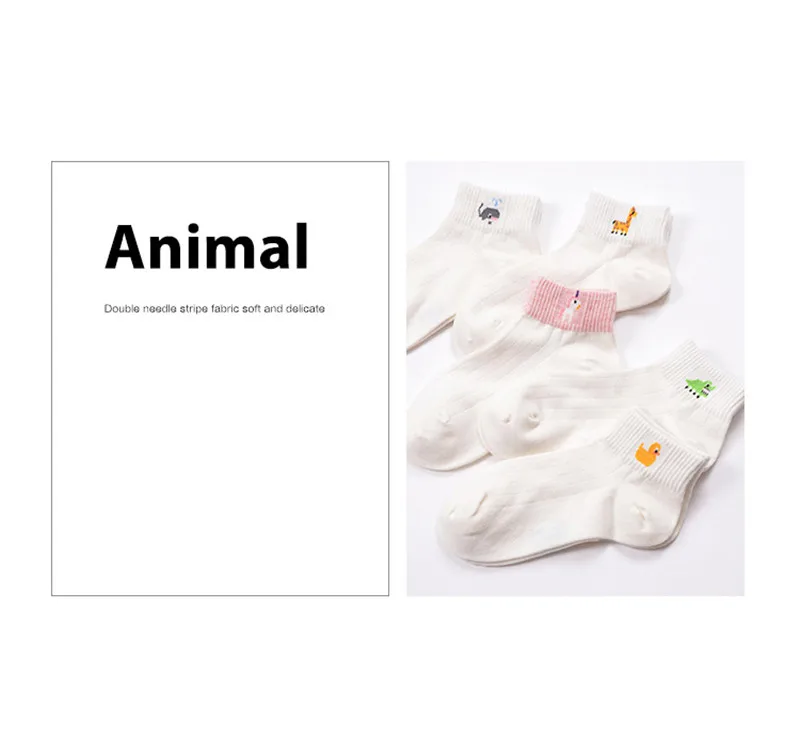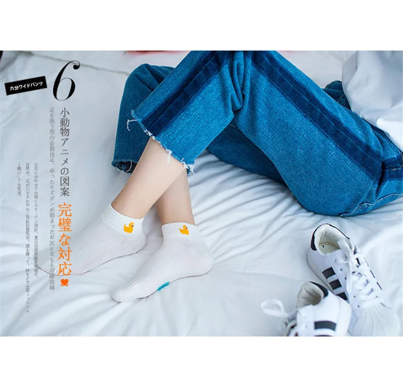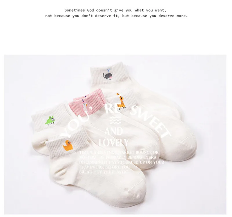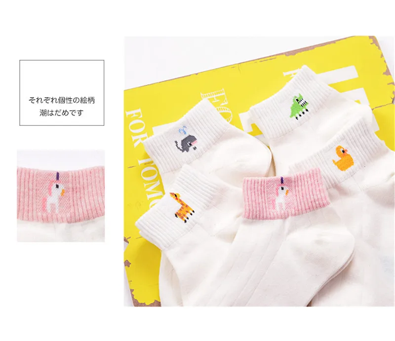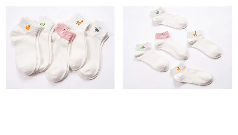 5 Pairs/Lot 2017 New Arrival Spring Summer Girls Women Fashion White Casual Socks Lass Bobby Sox With Cute Cartoon Duck/Whale