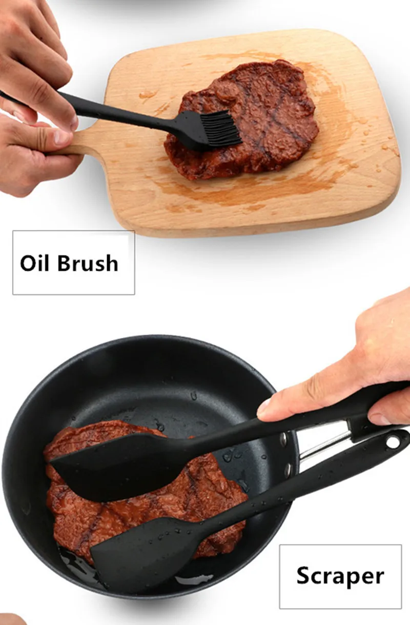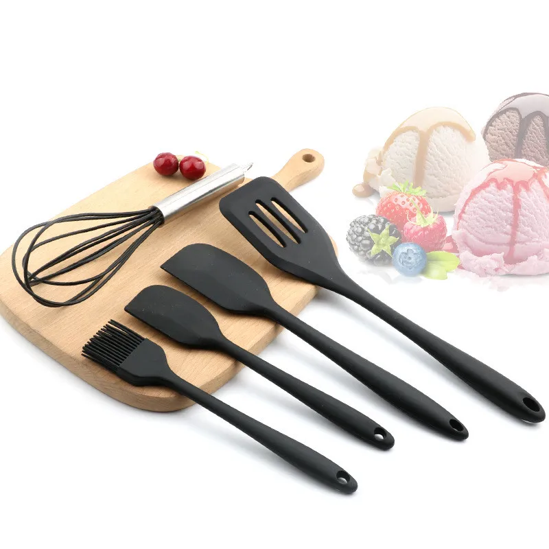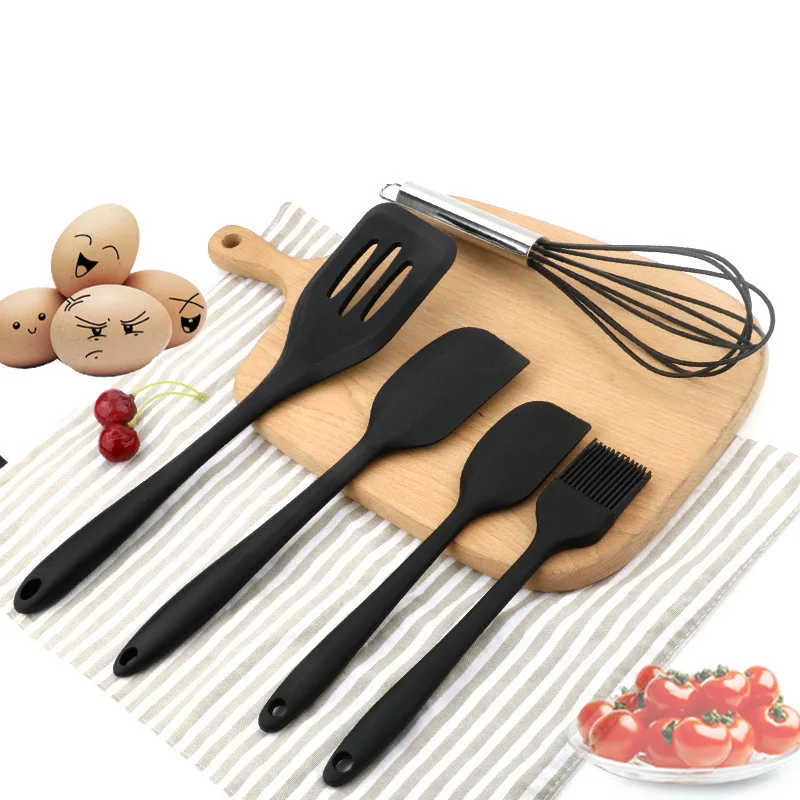 5 Pics Black Silicone Cookware Sets Egg Beater Spoon Clip Cream Scraper Spatula Oil Brush kitchenware kitchen Tool Baking Tools