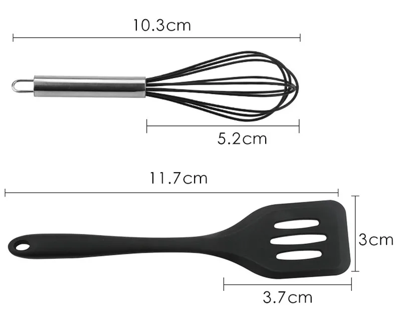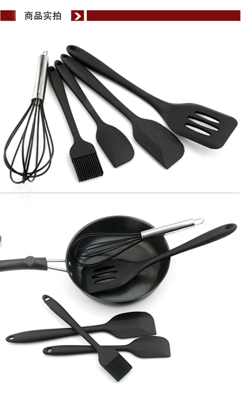 Black Silicone Cookware Sets 5 pieces Egg Beater Spoon Clip Spatula Oil Brush kitchenware