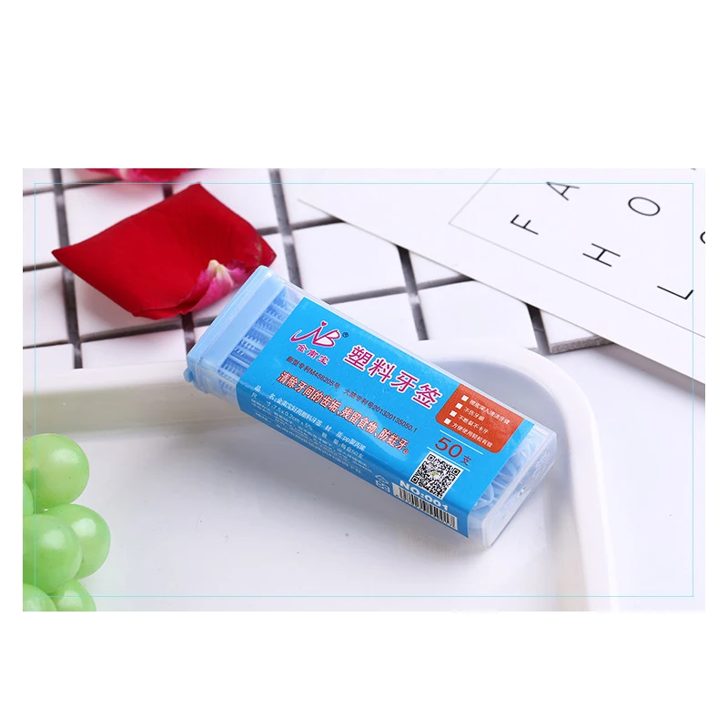 50Pcs Plastic toothpick Disposable Oral Gum Teeth Clean Tools Dental Plastic Tooth Picks Dental Flosser Interdental Brush