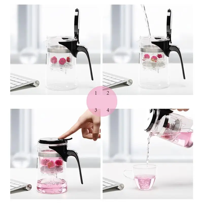 500ML Clear Glass Filter Teapot Heat Resistant Teapots with Filter Tank for Tea Leaf Loose Tea teapot