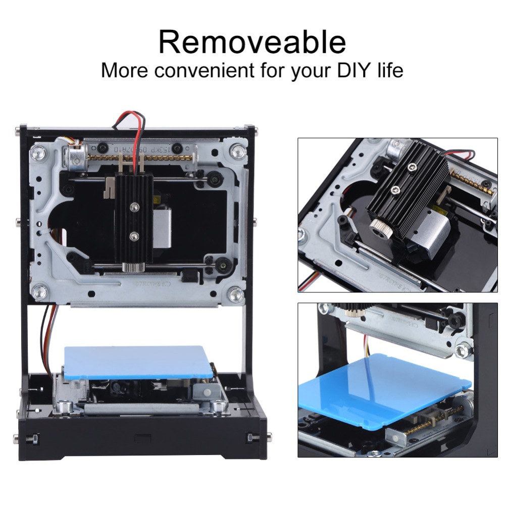8. Truly 500mW Blue and purple laser head, more higher speed, support more types of materials. Can be carved items included: Hardwood, plastic, bamboo, rubber, leather, and so on. Can’t engrave any kind of metal or glass, transparent material.