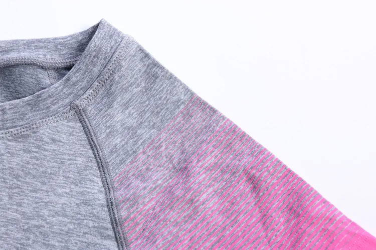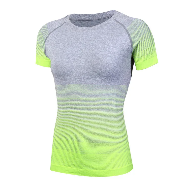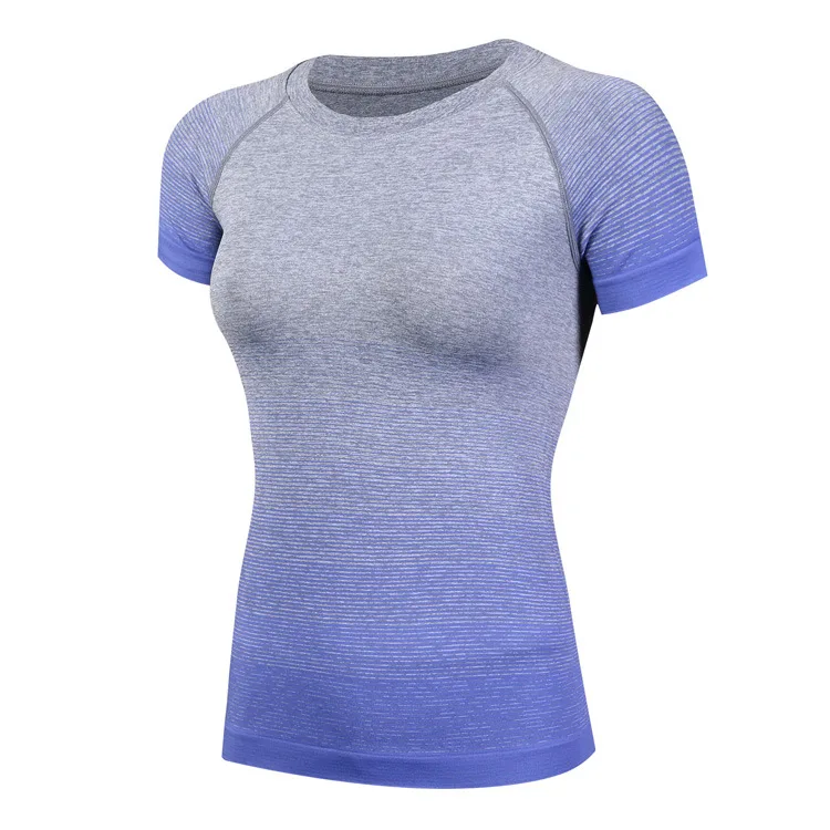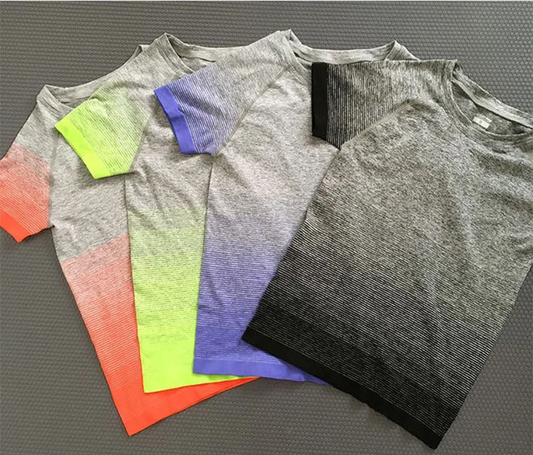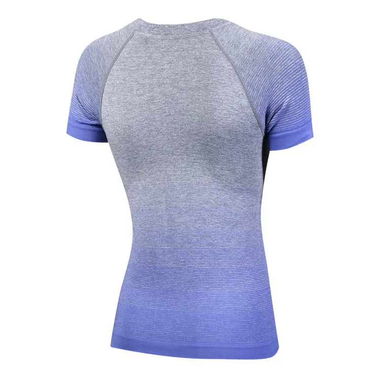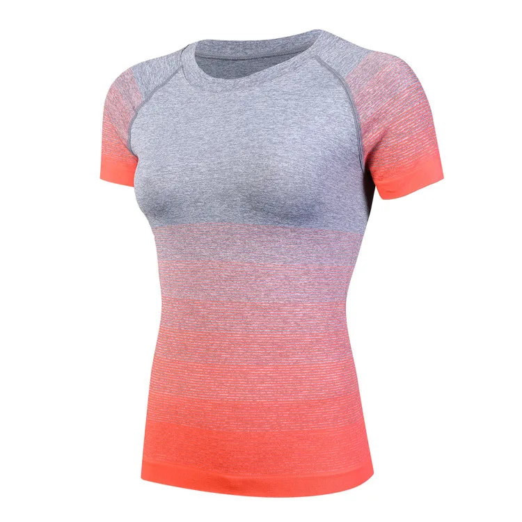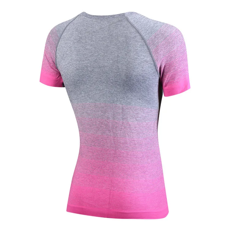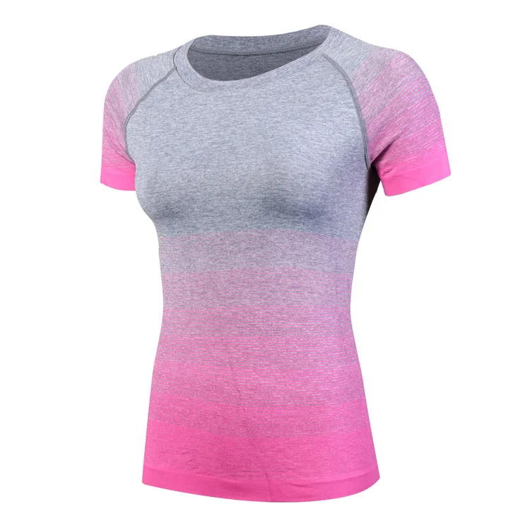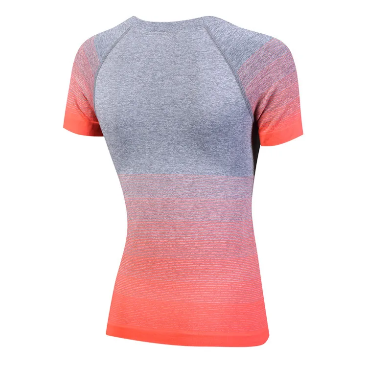 #5013 Women Ladies Personality Gradient Color Sports Running Exercise Training Yoga T-Shirts Thermal Short Sleeves Tops Female