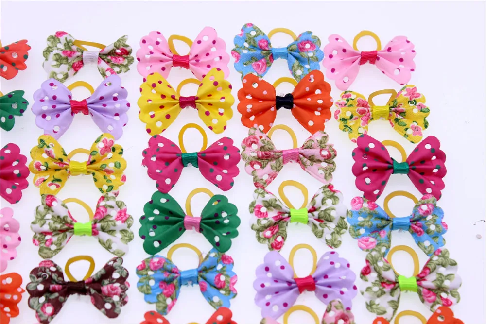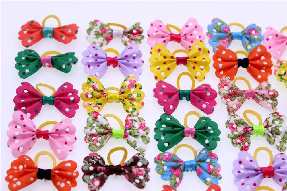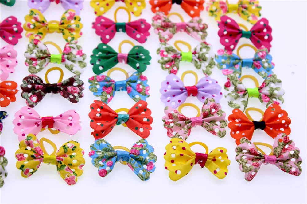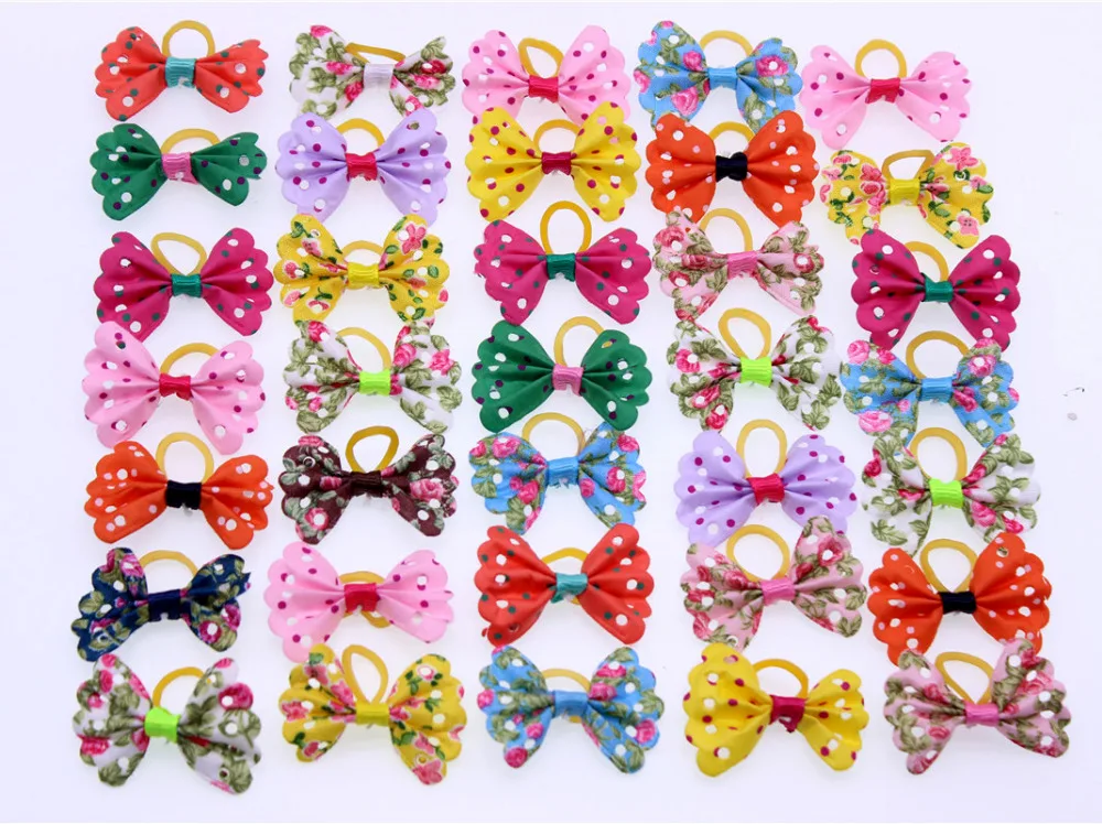 50pcs Colourful Pet Dog hair bows Butterfly style small Dog Bows Rubber Bands Dog hair accessories Grooming Products Cute Gift