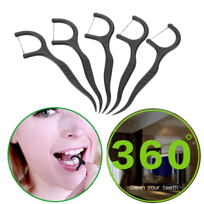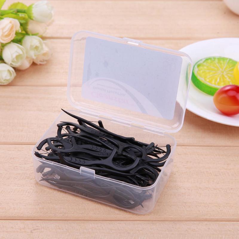 50pcs Bamboo Charcoal Interdental Brush Teeth Clean Dental Floss Stick Dental Floss Teeth Stick Tooth Picks