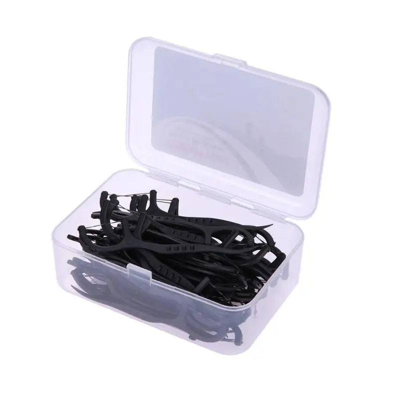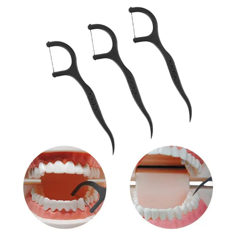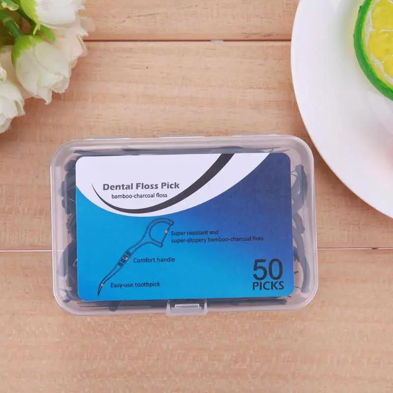 50pcs Bamboo Charcoal Interdental Brush Teeth Clean Dental Floss Stick Dental Floss Teeth Stick Tooth Picks