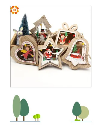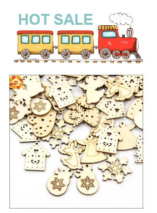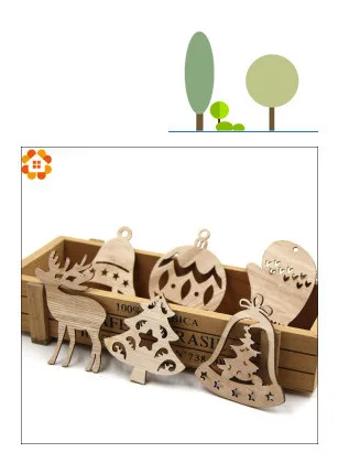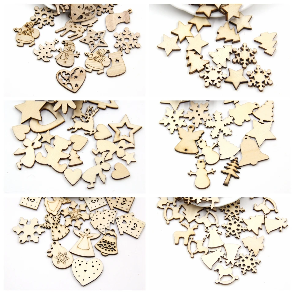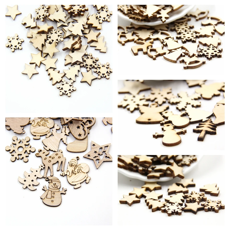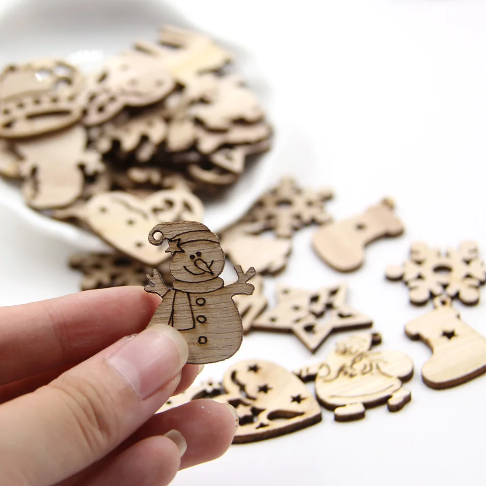 50PCS DIY Natural Wooden Chip Christmas Tree Hanging Ornaments Pendant Kids Gifts Snowman Tree Shape Xmas Ornaments Decorations