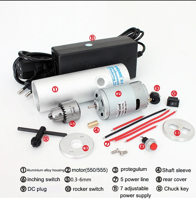 555 aluminum alloy electric drill shell kit with point switch motor micro model assembly DIY hand drill accessories