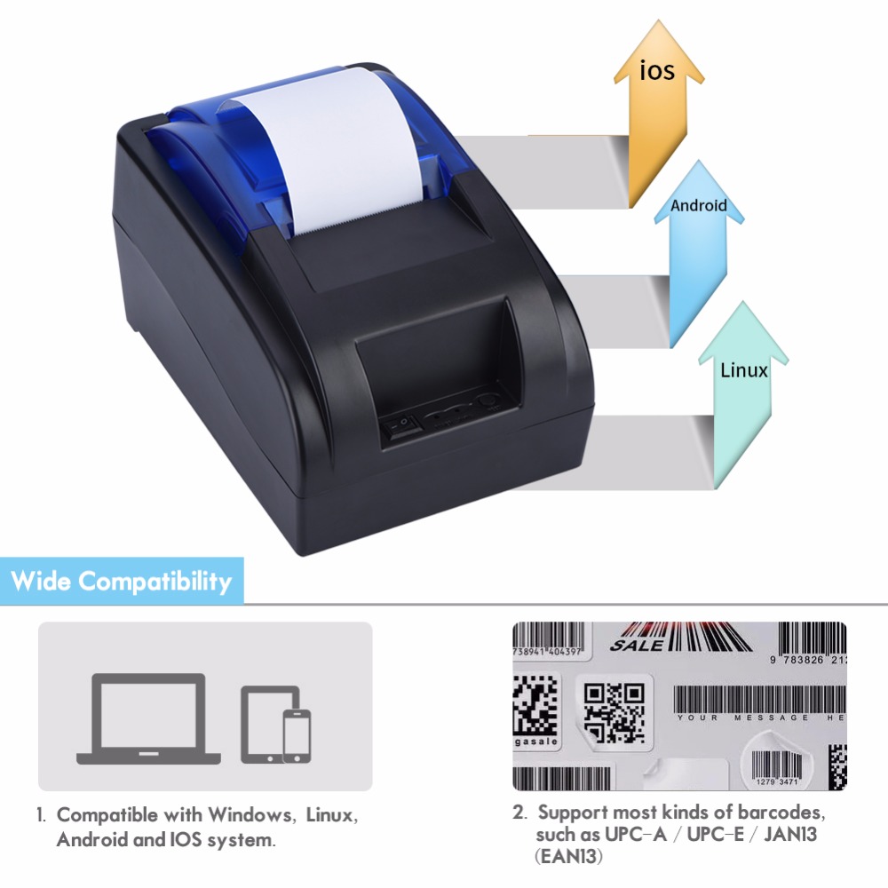 58mm USB Thermal Cash Receipt Printer 90mm/sec Support Android iOS Windows Linux