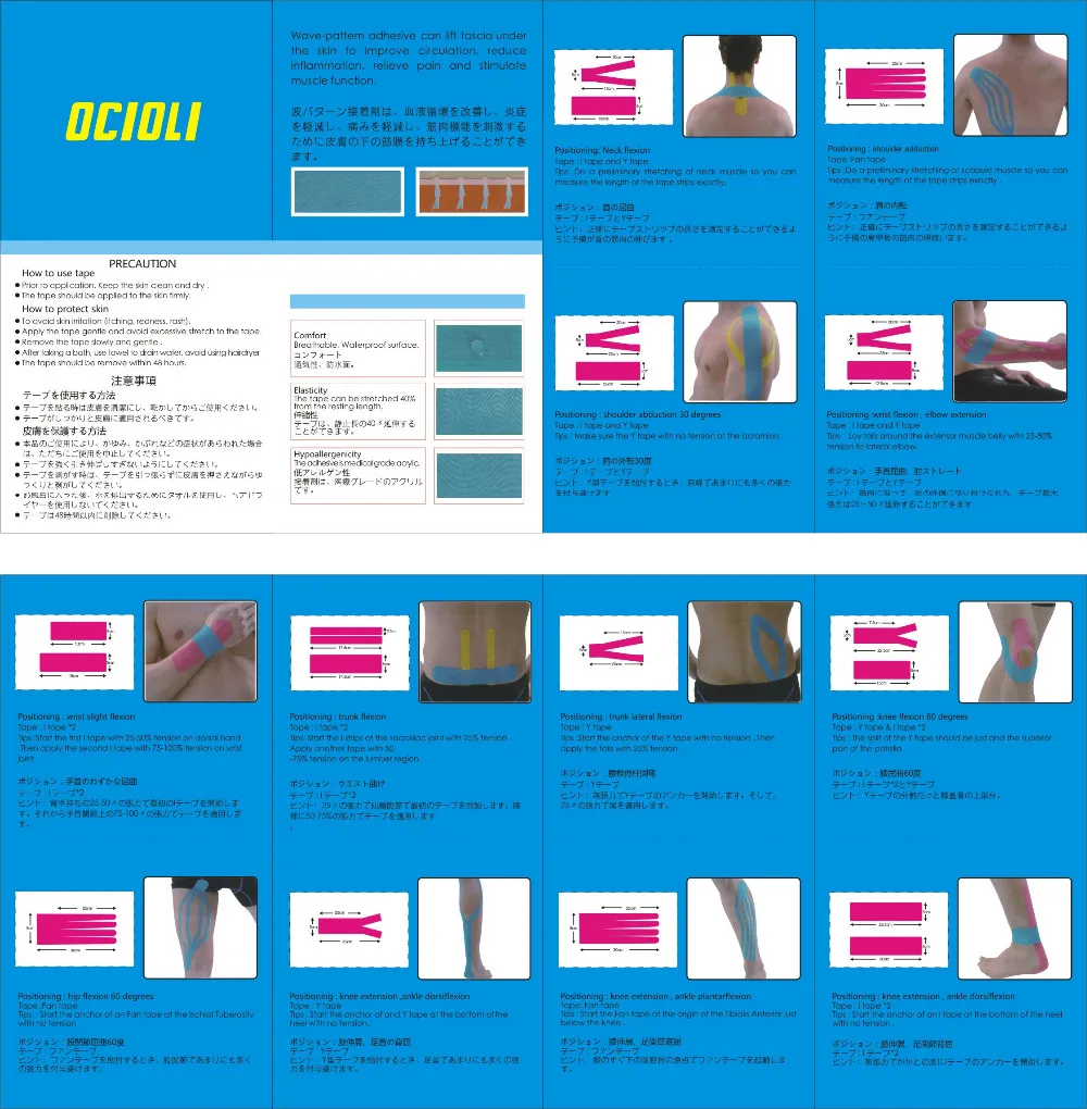 Madisio Tape is a super thin athletic tape, about the same thickness and the elasticity of skin and muscles. Elasticity is over 1:2, supper high elastic and strong rebound force. Madisio Tape have three version, Madisio Tape A coated with hot-melting glue, Madisio Tape B coated with acrylic-acid, Madisio Tape C is four sides elastic tape (elastic in weft and warp both way). To meet all different kinds of requirement of clients.