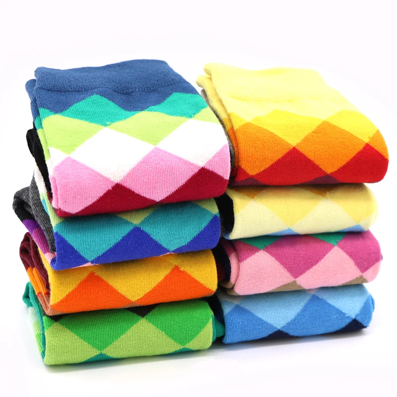 5Pair Fashion Colorful Women Socks Female Crew Cotton Socks Ladies Diamond Plaid Pattern Warm Socks For Women 3D Socks Calcetines