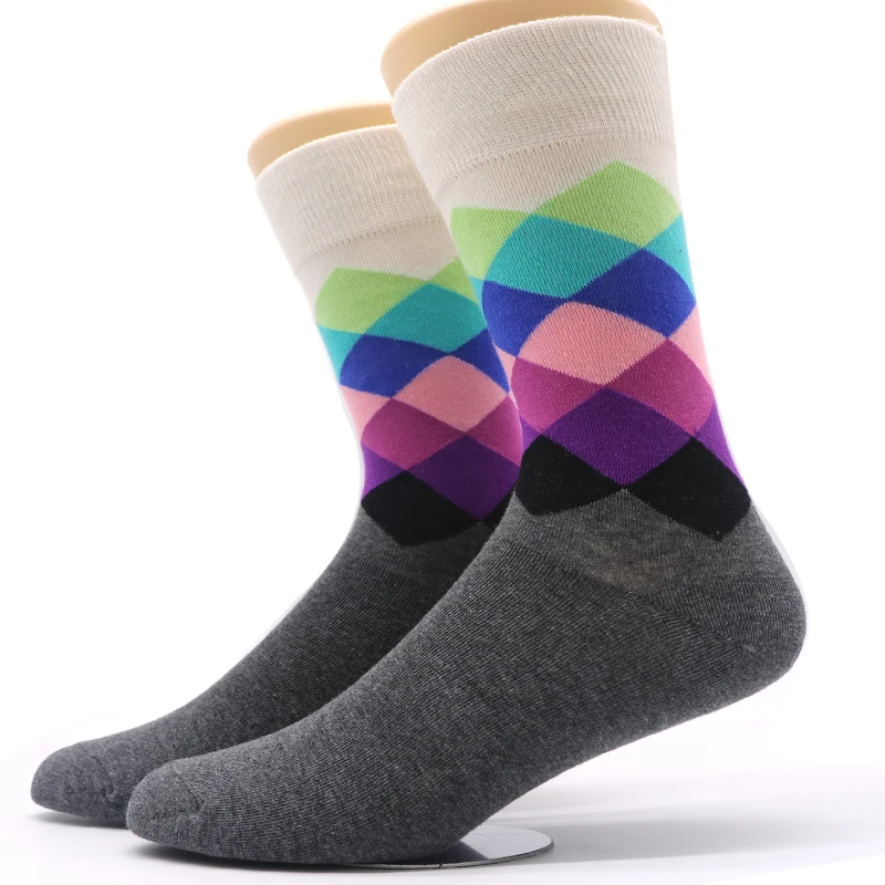 5Pair Fashion Colorful Women Socks Female Crew Cotton Socks Ladies Diamond Plaid Pattern Warm Socks For Women 3D Socks Calcetines