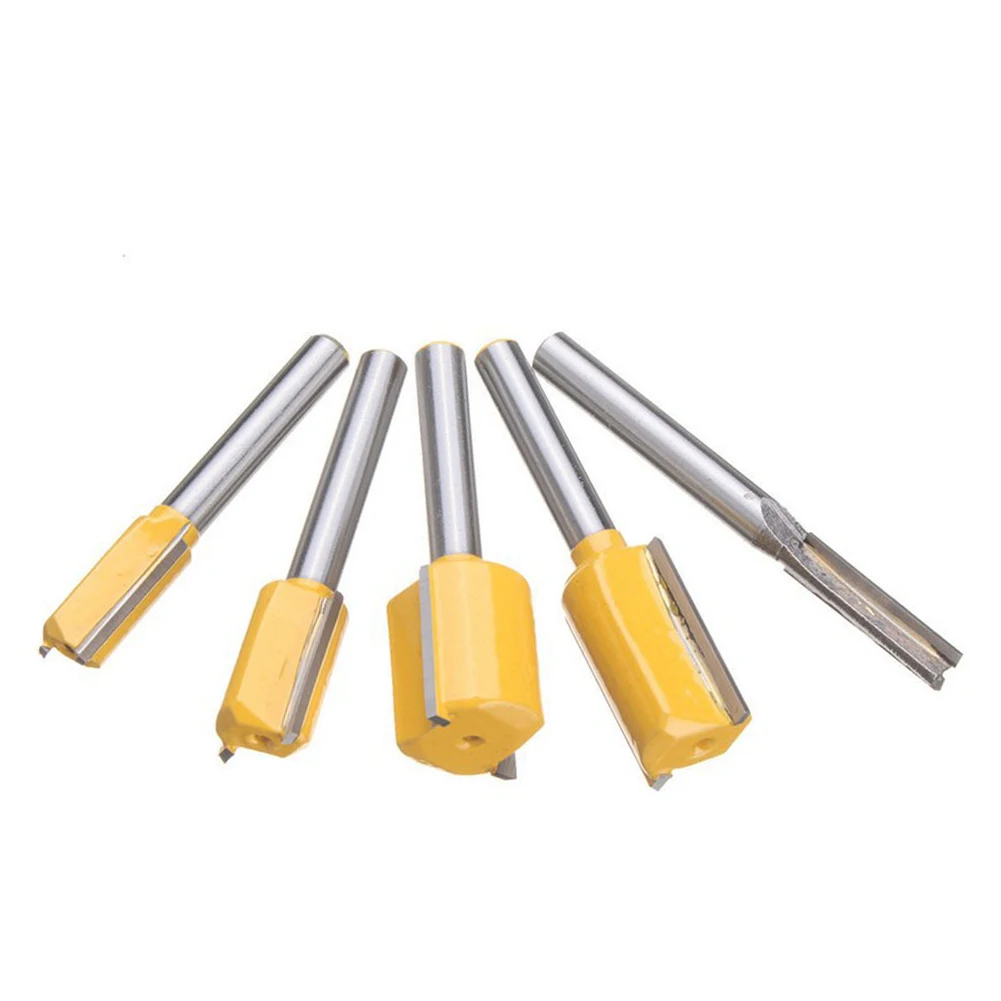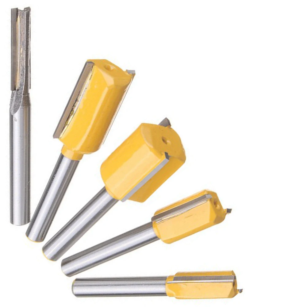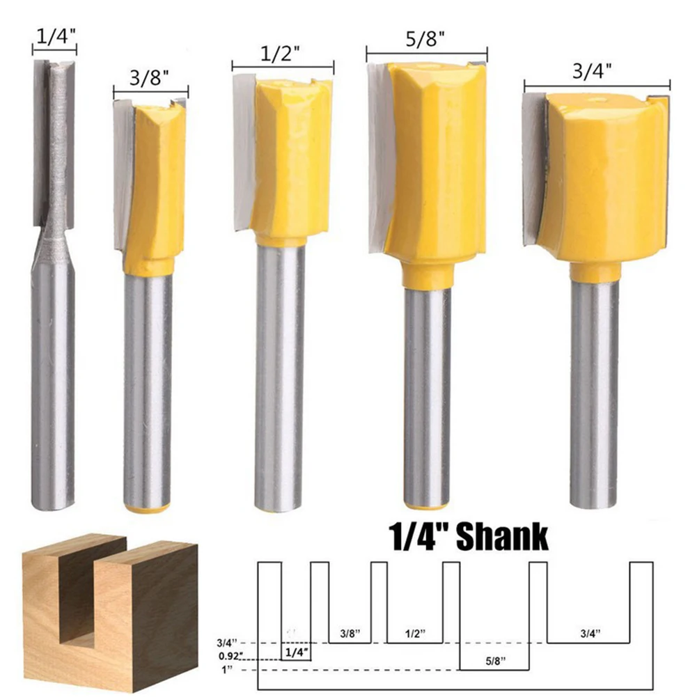 5pcs 1/4 Shank Straight & Dado Knife Router Bit Set Flush Trimming Cutter For Woodworking Bits Tool Milling Cutter