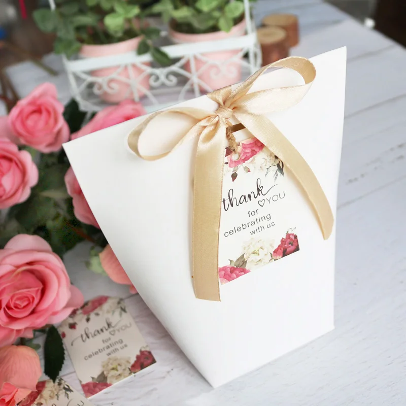 5,Application: These creative boxes are made by high quality paperboard which is noteasily deformed. These favor boxes are ideal for wedding, celebration, anniversary, baby shower or birthday party decoration Perfect for candy packing, cookies/pastry packing, jewelry box, creative arts & craft DIY or any small object for a simple and pleasing way to give presents.