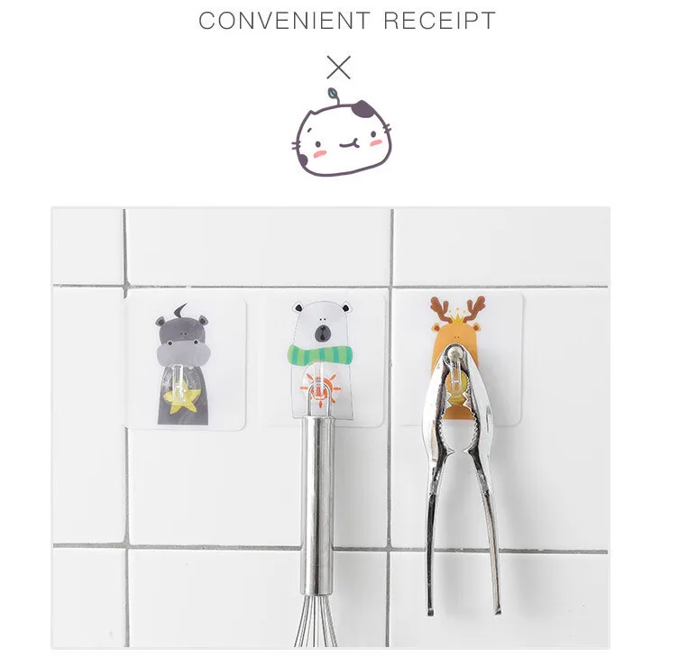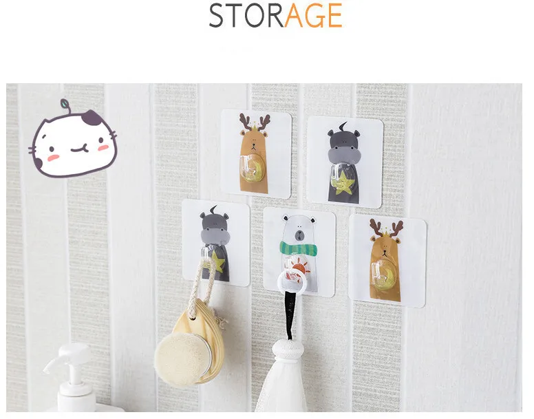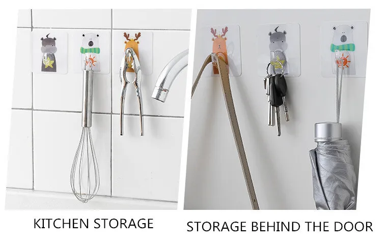 LIRUIKA Cute Cartoon Kitchen Hook Strong Adhesive Paste Hooks For Arrangement Bedroom Kitchen Tools Keep House Clean