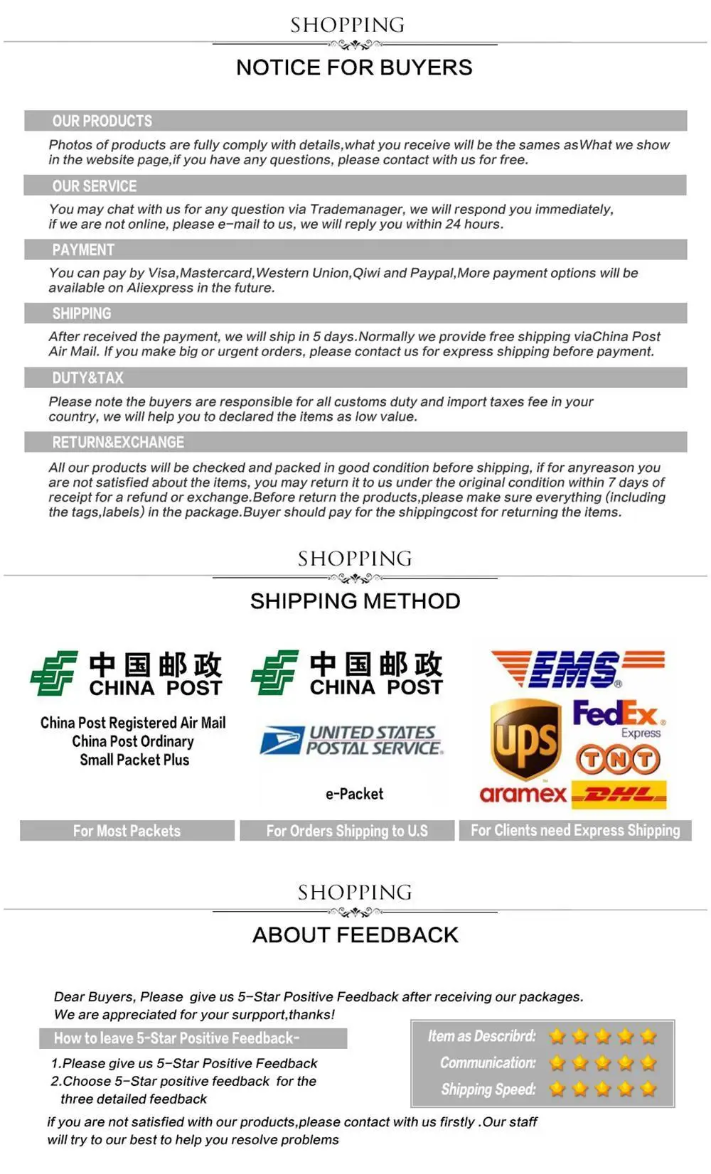 Packages from our warehouse in China will be shipped by ePacket or EMS depending on the weight and size of the product. Packages shipped from our US warehouse are shipped through USPS.