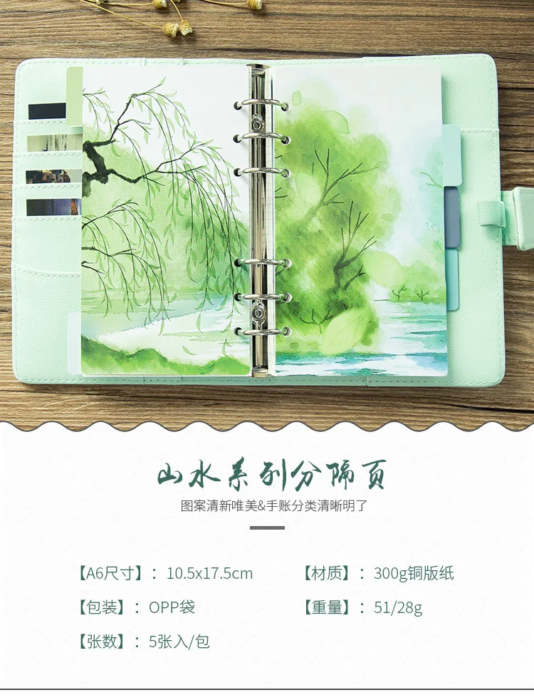 5pcs/lot Fresh landscape series Diary Notebook Accessories Creative A5/A6 Spiral Dividers Planner Filler Paper Matching Filofax
