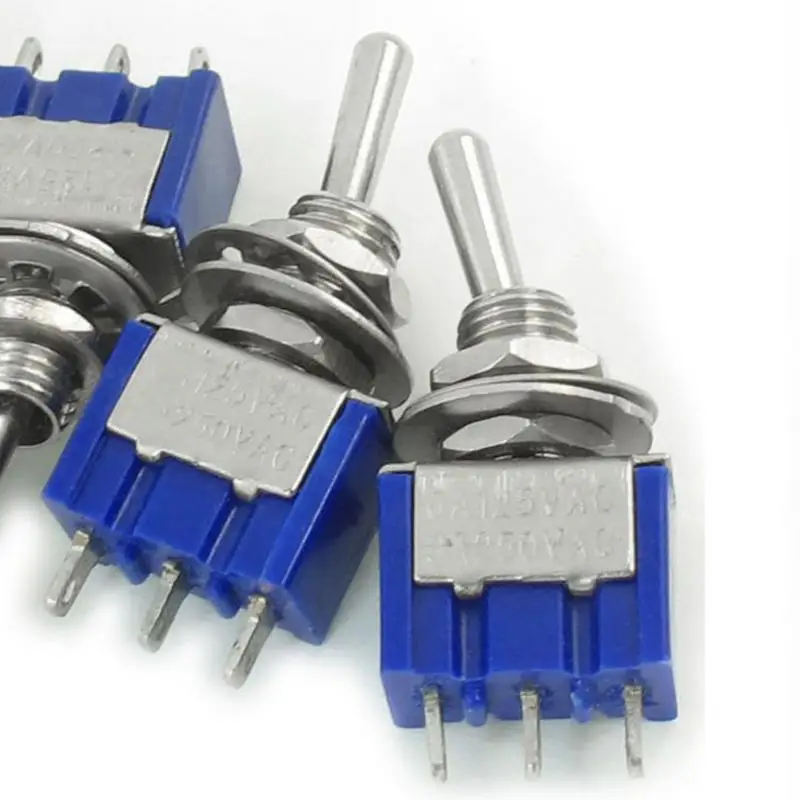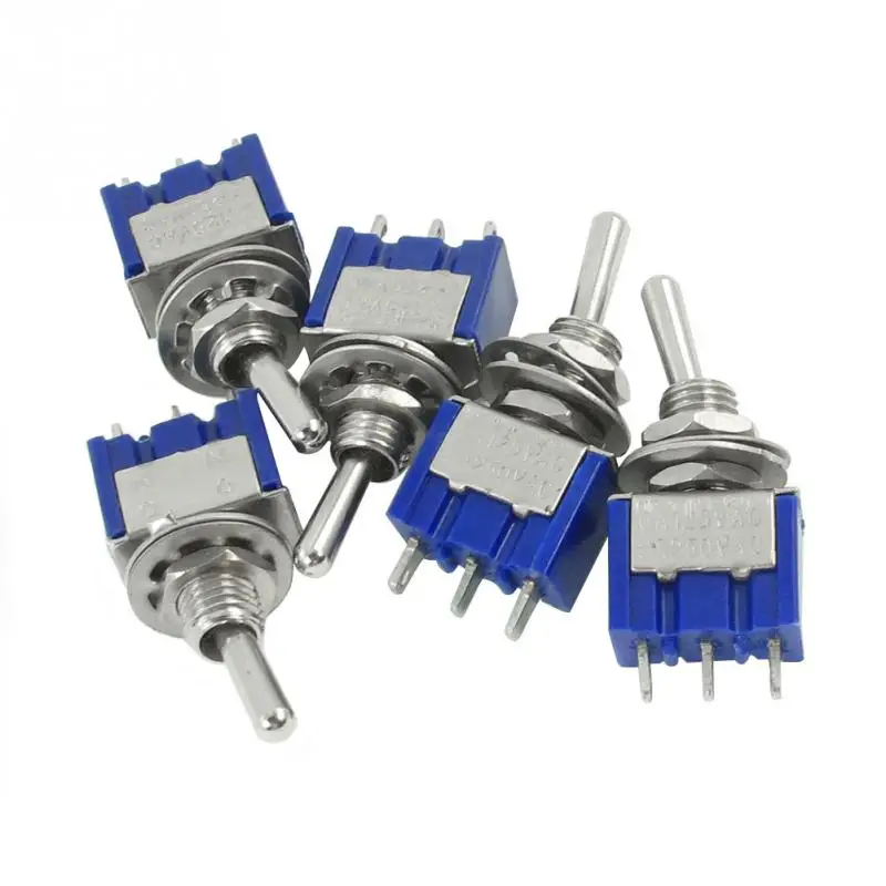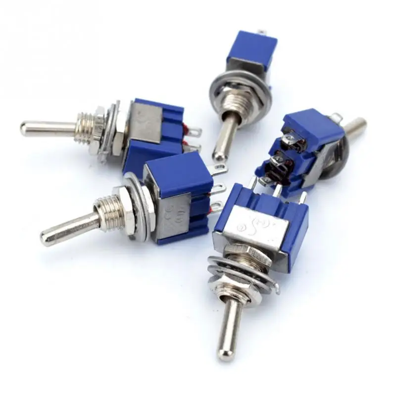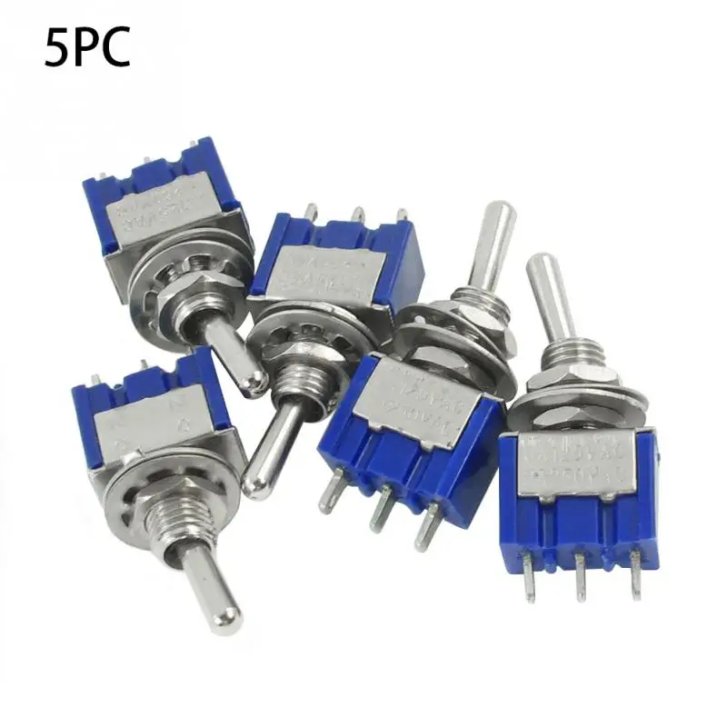 5pcs/set Toggle Switch AC 2 Position 3 Terminals ON/OFF SPDT Dark Blue 6mm