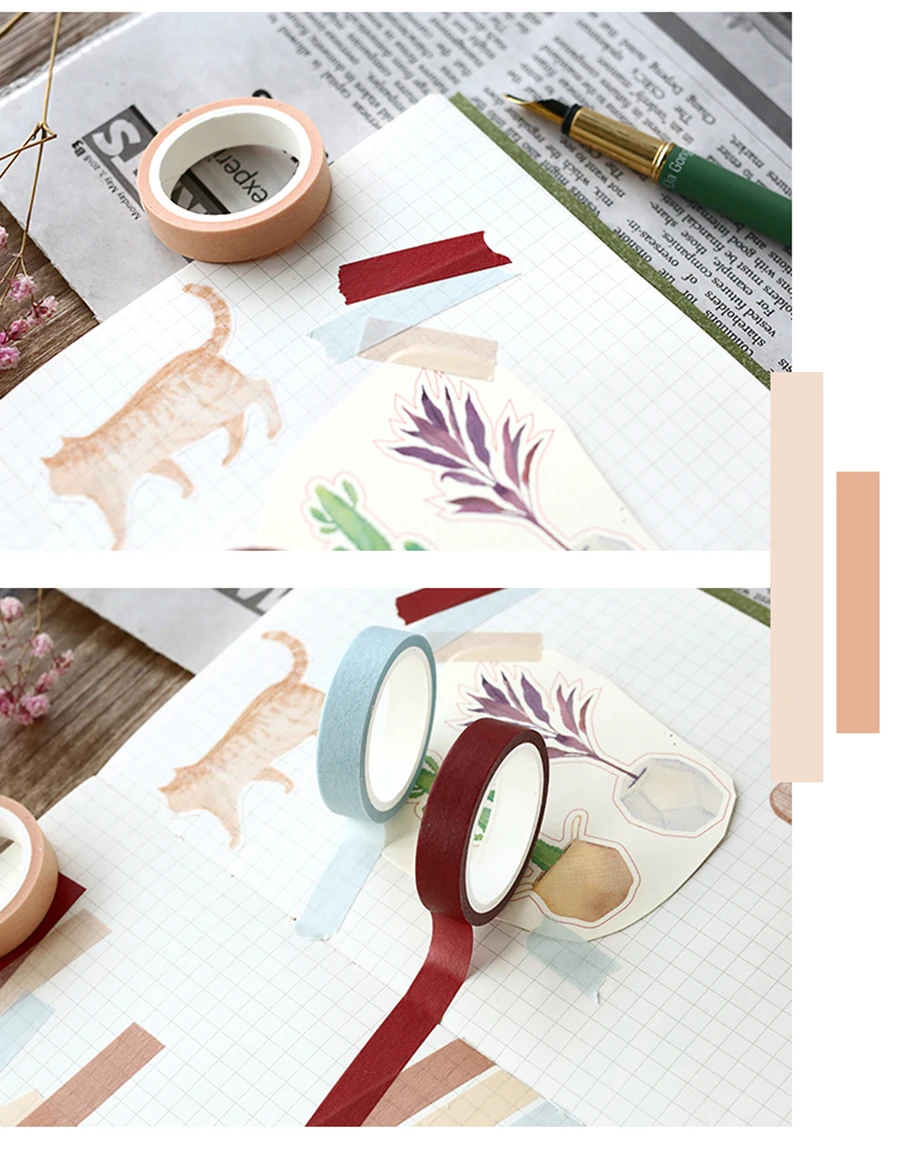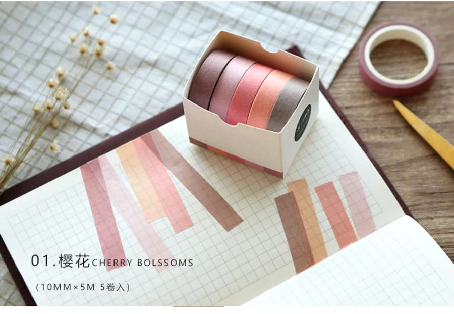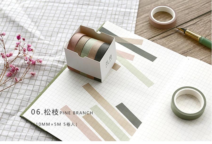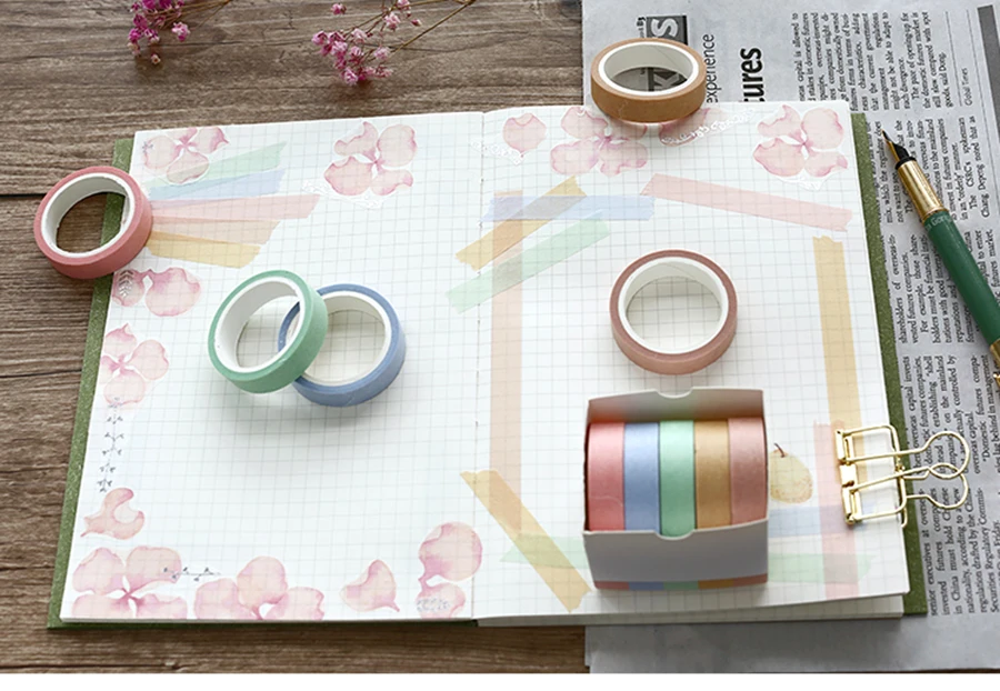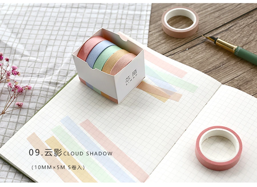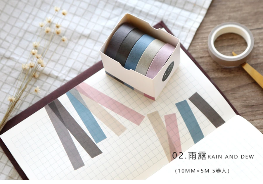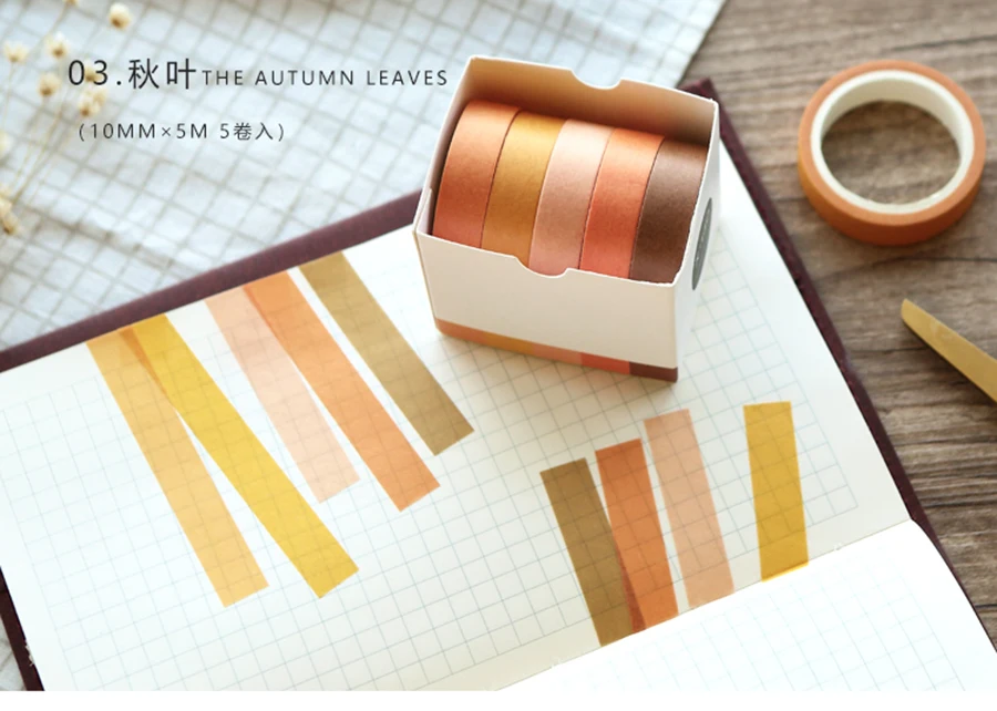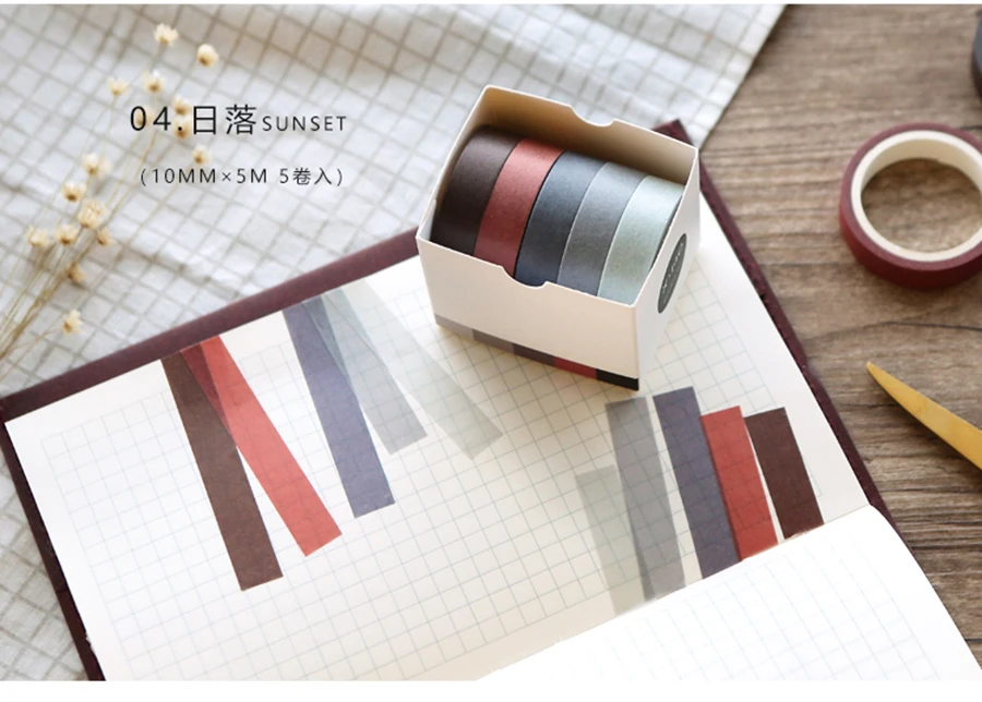 5X 10mm*5M Solid color paper tape DIY decorative scrapbook masking tape washi tape stationery office adhesive tape