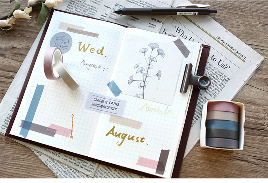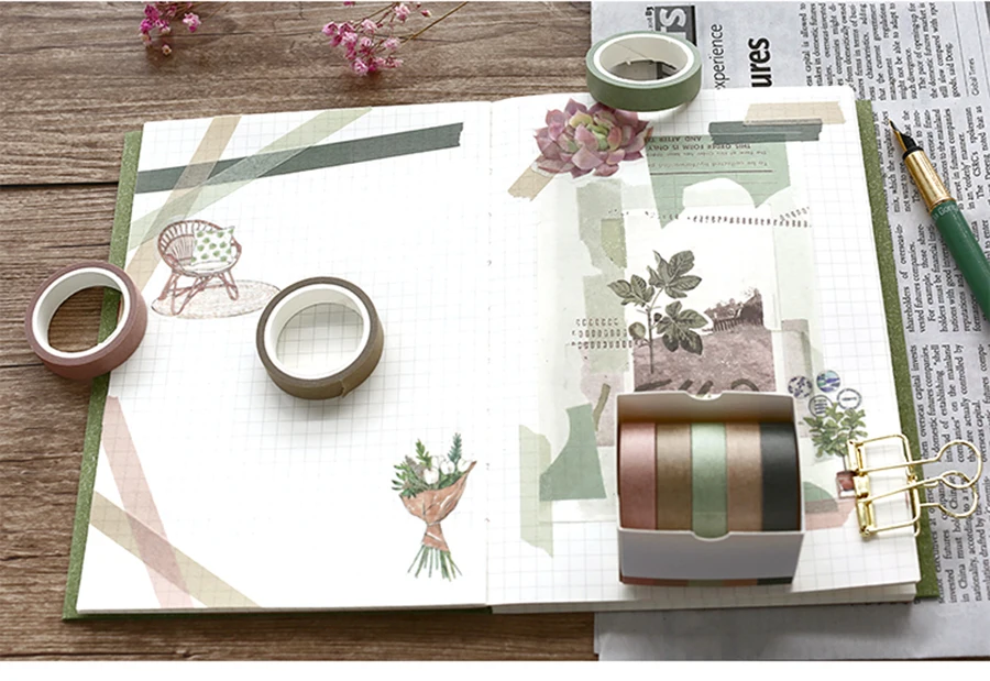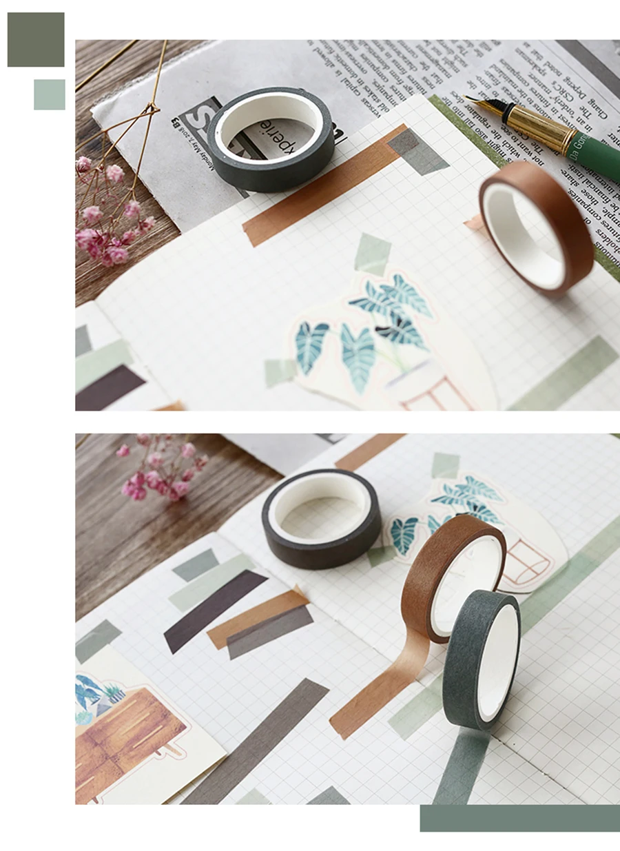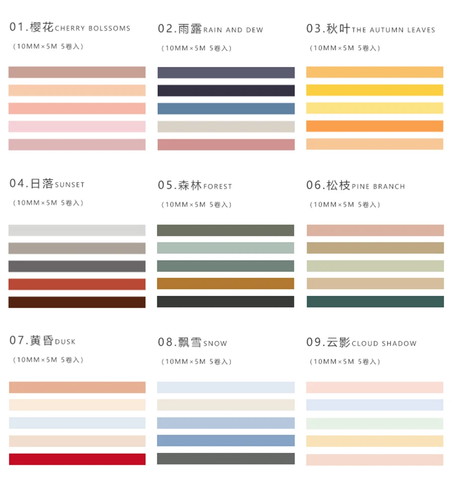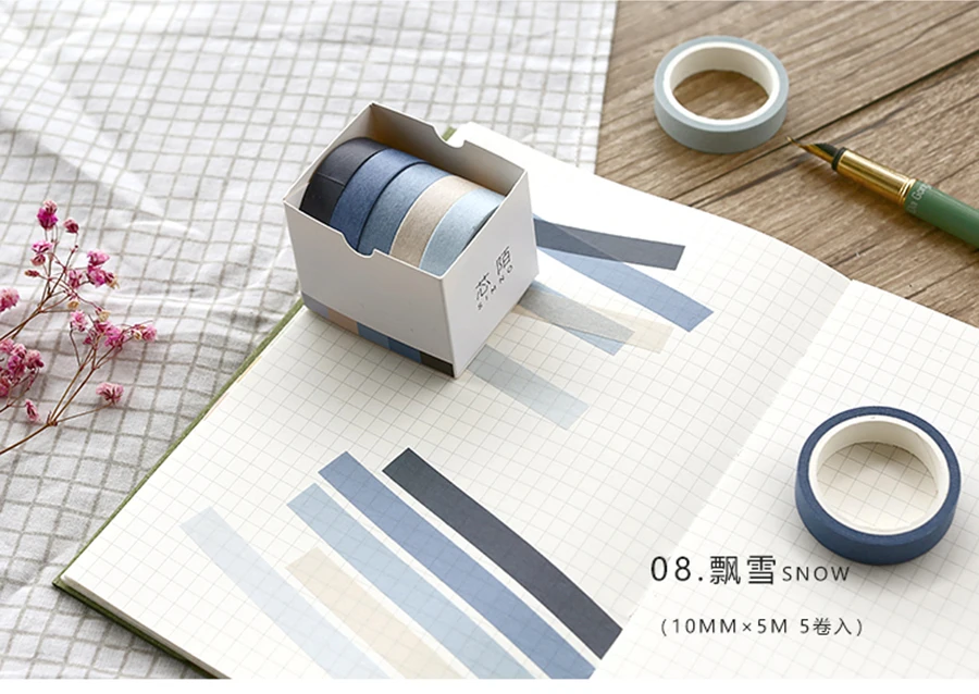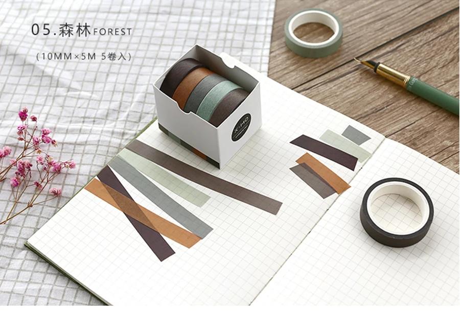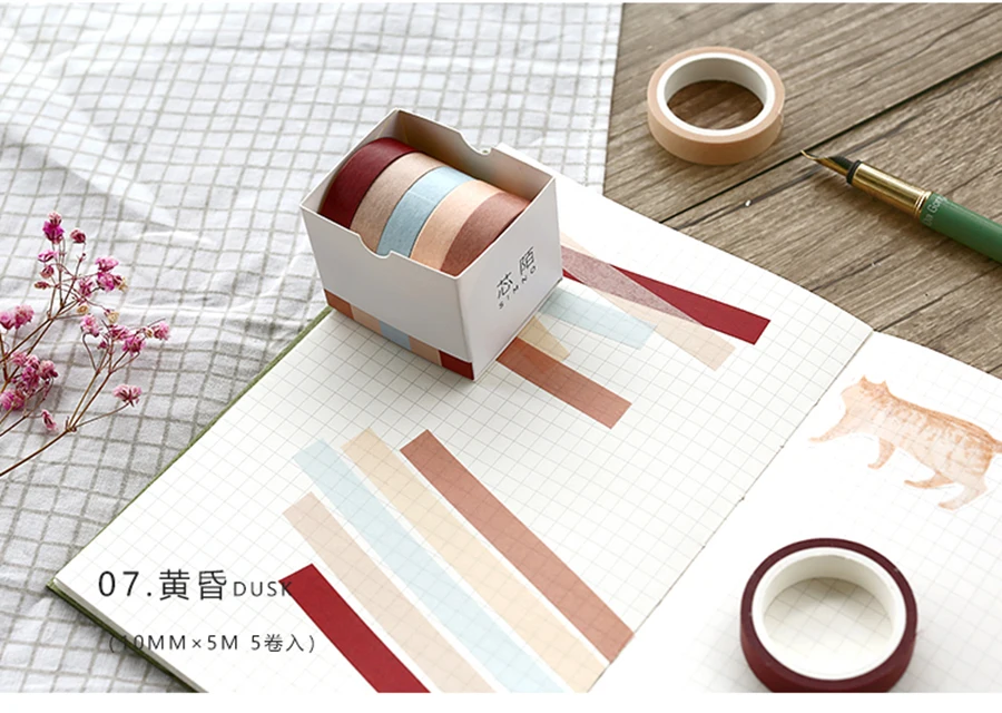 5X 10mm*5M Solid color paper tape DIY decorative scrapbook masking tape washi tape stationery office adhesive tape