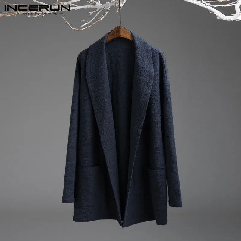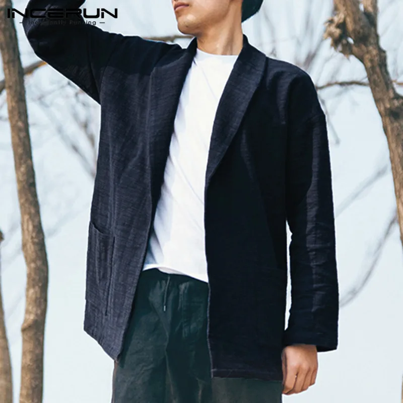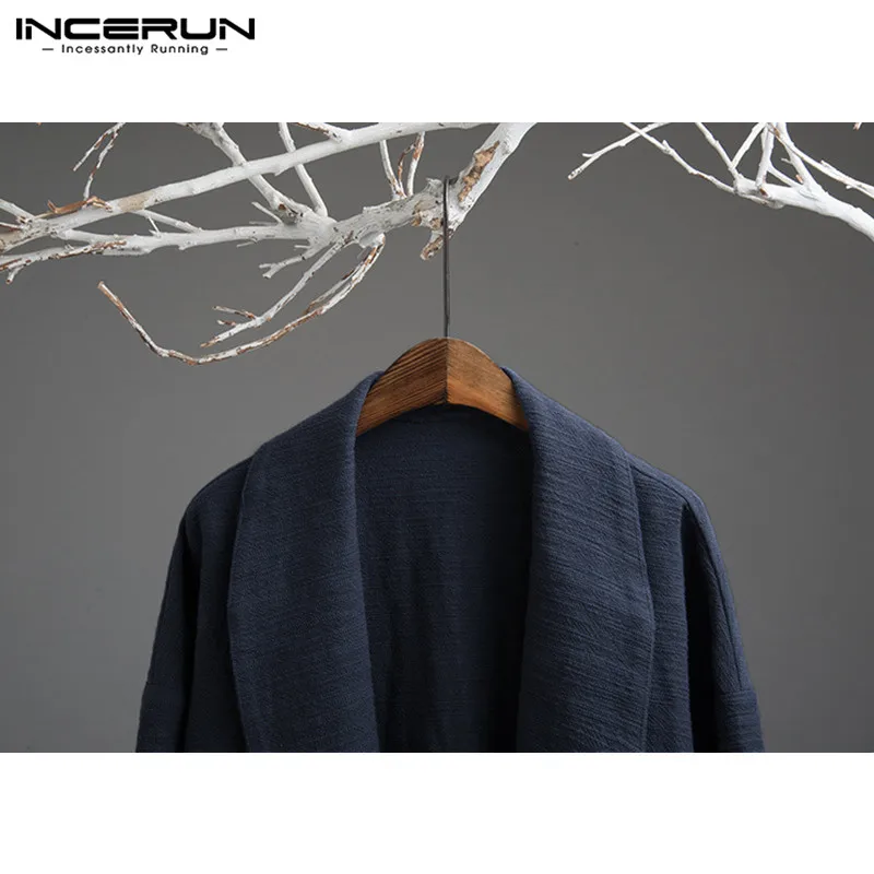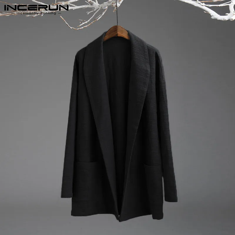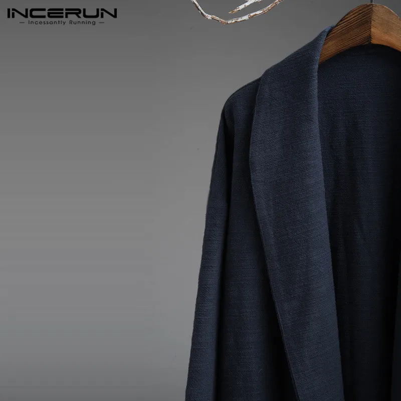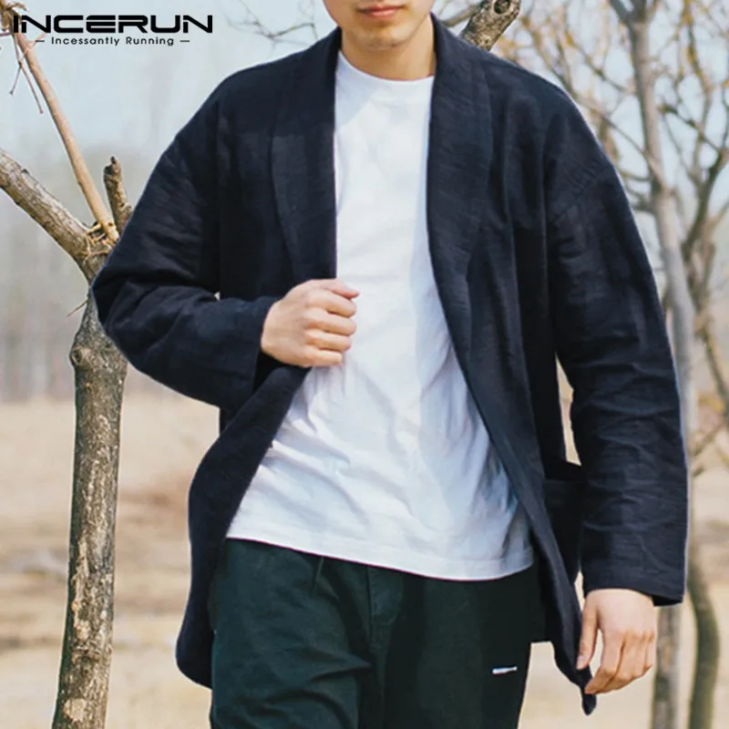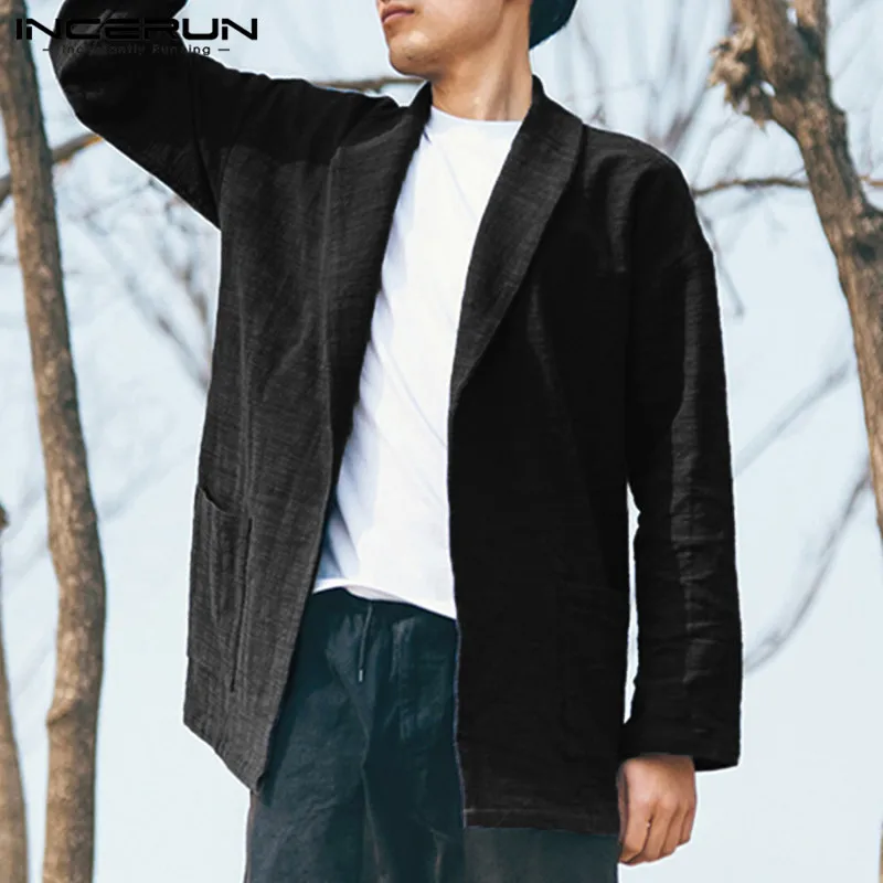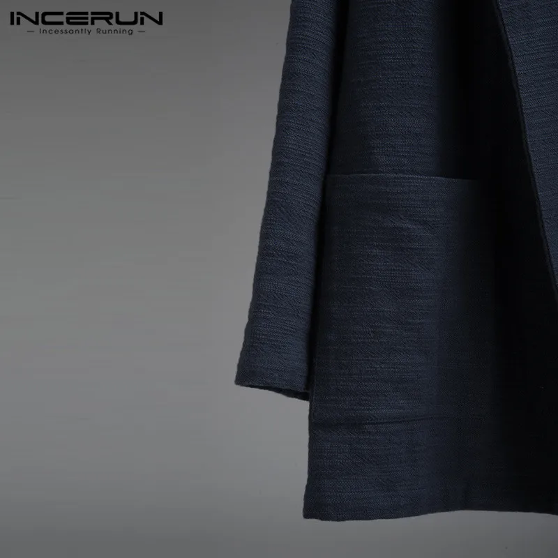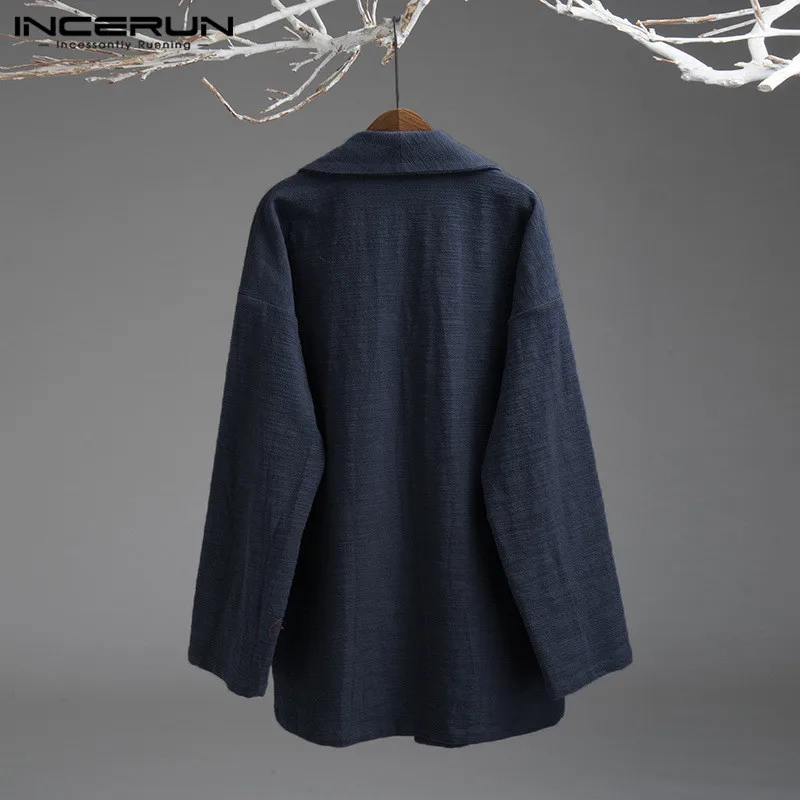 5XL Men’s Jackets Kimono Retro Chinese Style Coats Casual Solid Black Outerwear Long Sleeve Loose Male Trench Autumn INCERUN