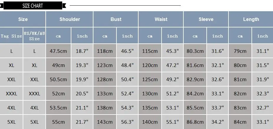 Size:L,XL,2XL,3XL,4XL,5XL
