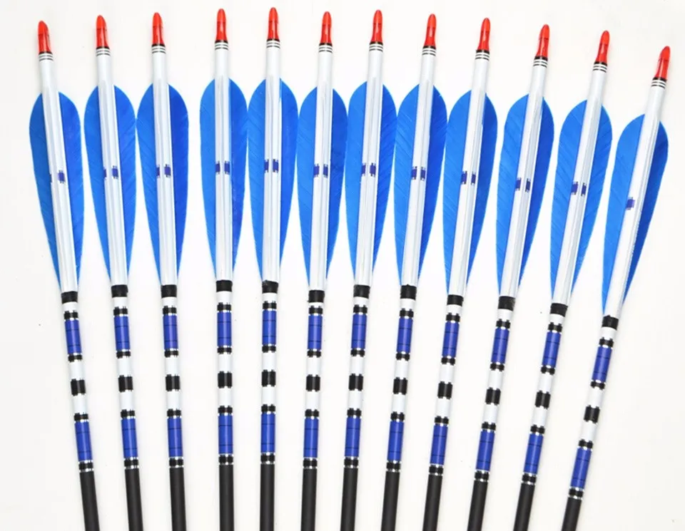 6/12/24pcs Real Turkey Feather Carbon Arrows with Length 31″ Spine 500 for Hunting Archery for Compound and Recurve Bow E