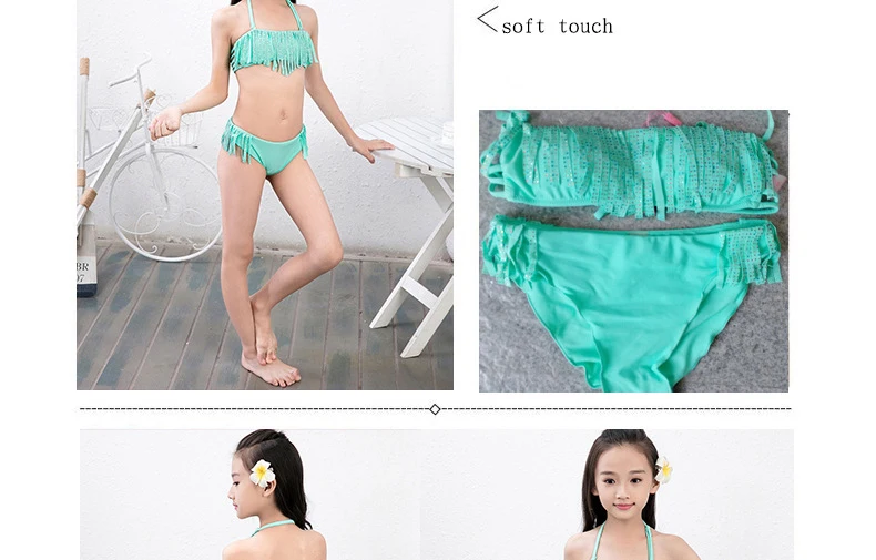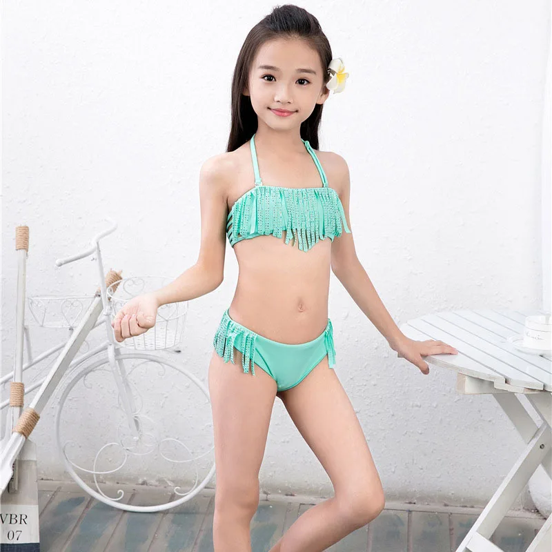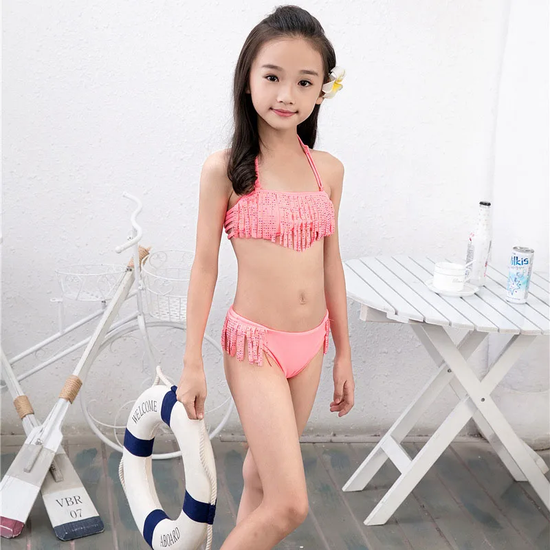 6-16Y Girls Bikini Set 2018 Baby Girls Summer Tassel Kids Split Swimwear Swimsuit Bikini Beachwear Children Biquini Girls Gifts