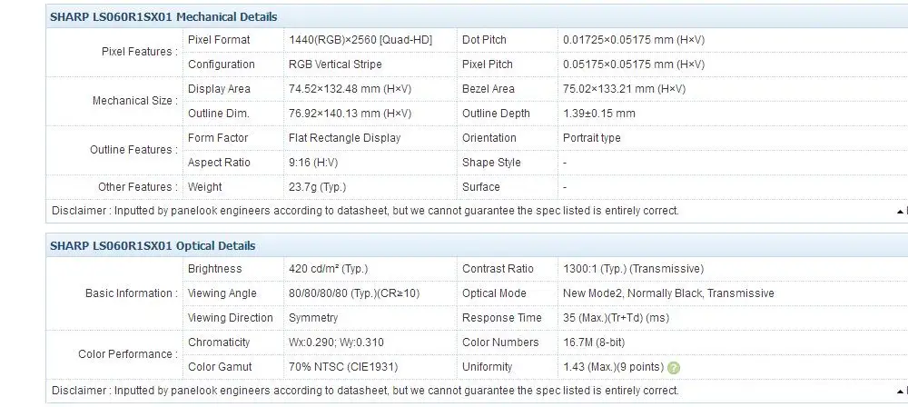 1* lcd 1440*2560 6 inch LS060R1SX01