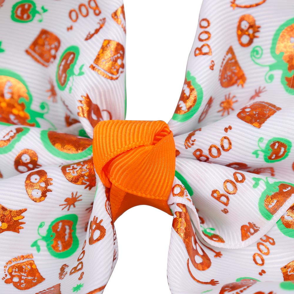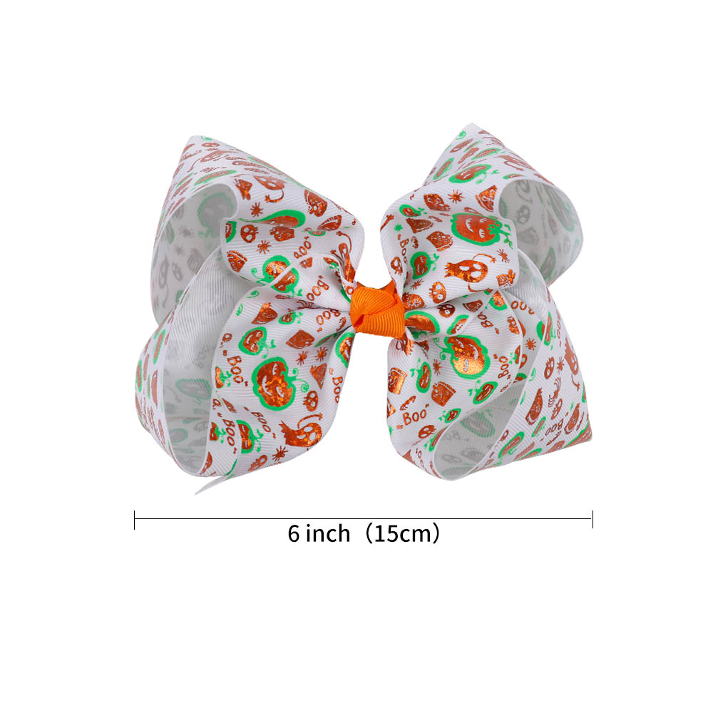 Product Name :6 Inch Large Halloween Printed Hair Bows Bling Pumpkin Spider Web Hair Clips For Teens Girls Festival Knotted Hair Accessoriess.
