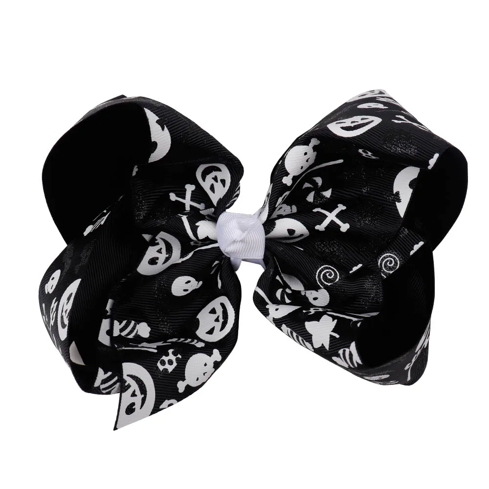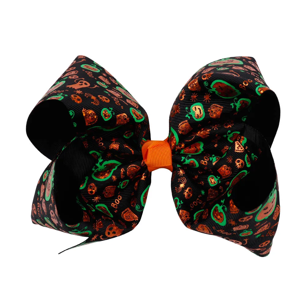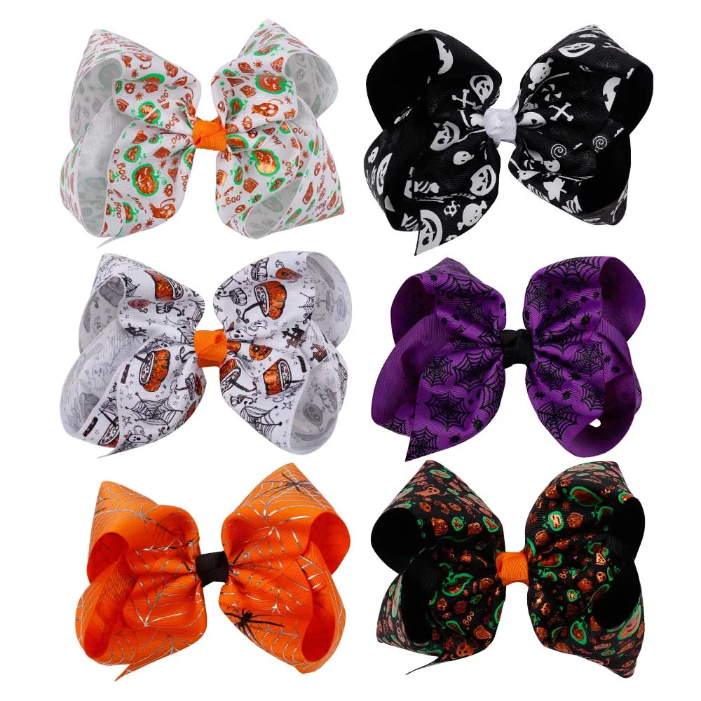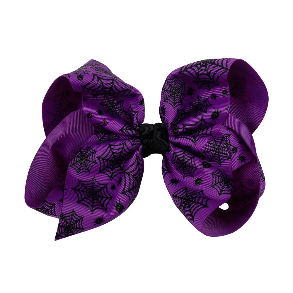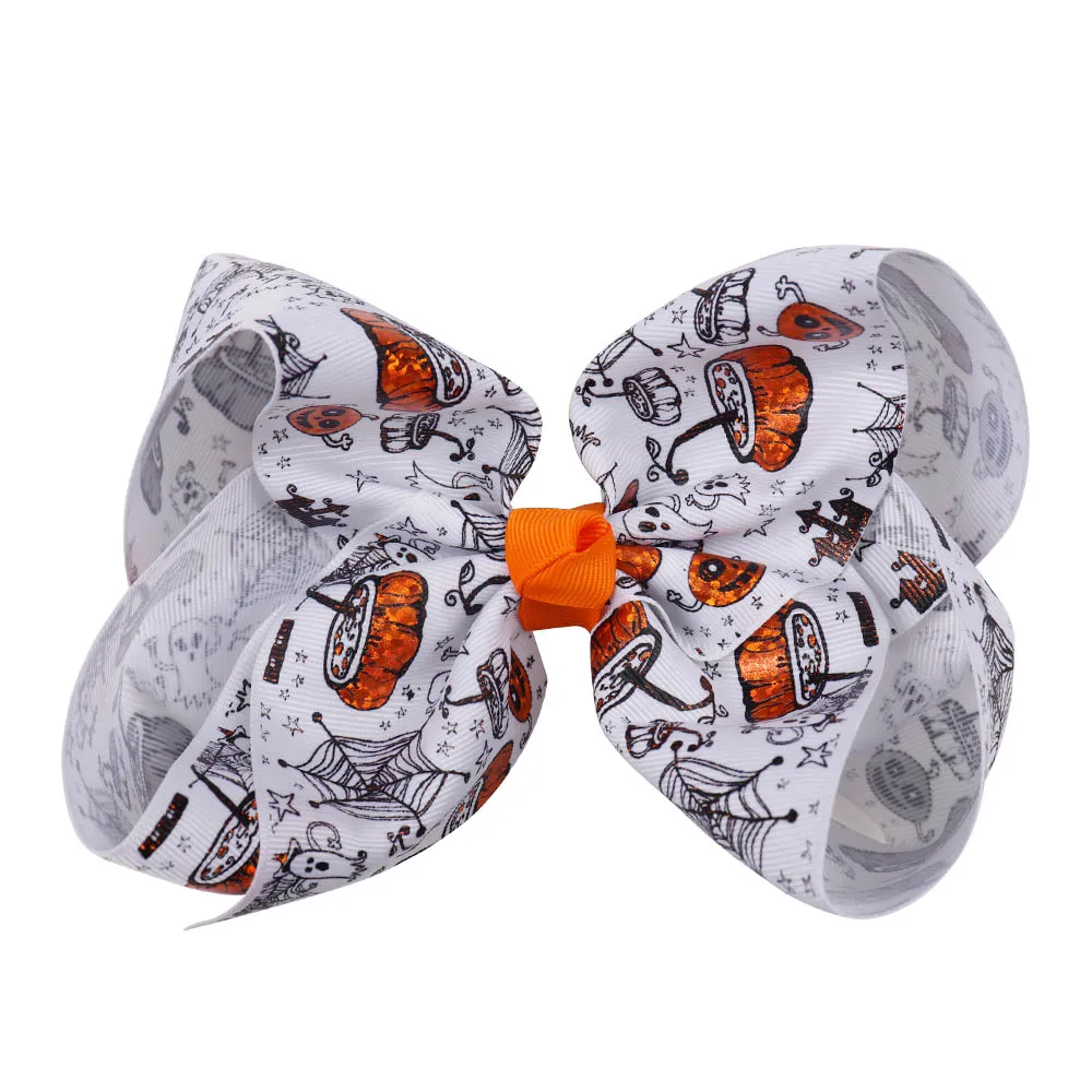 Product Name :6 Inch Large Halloween Printed Hair Bows Bling Pumpkin Spider Web Hair Clips For Teens Girls Festival Knotted Hair Accessoriess.