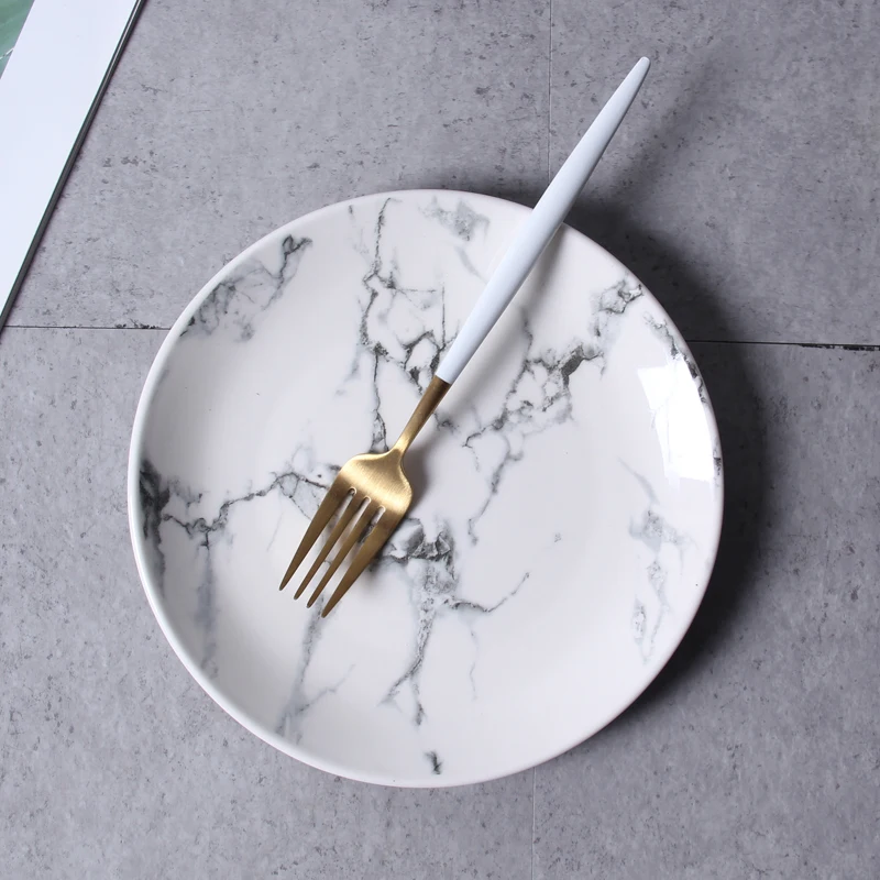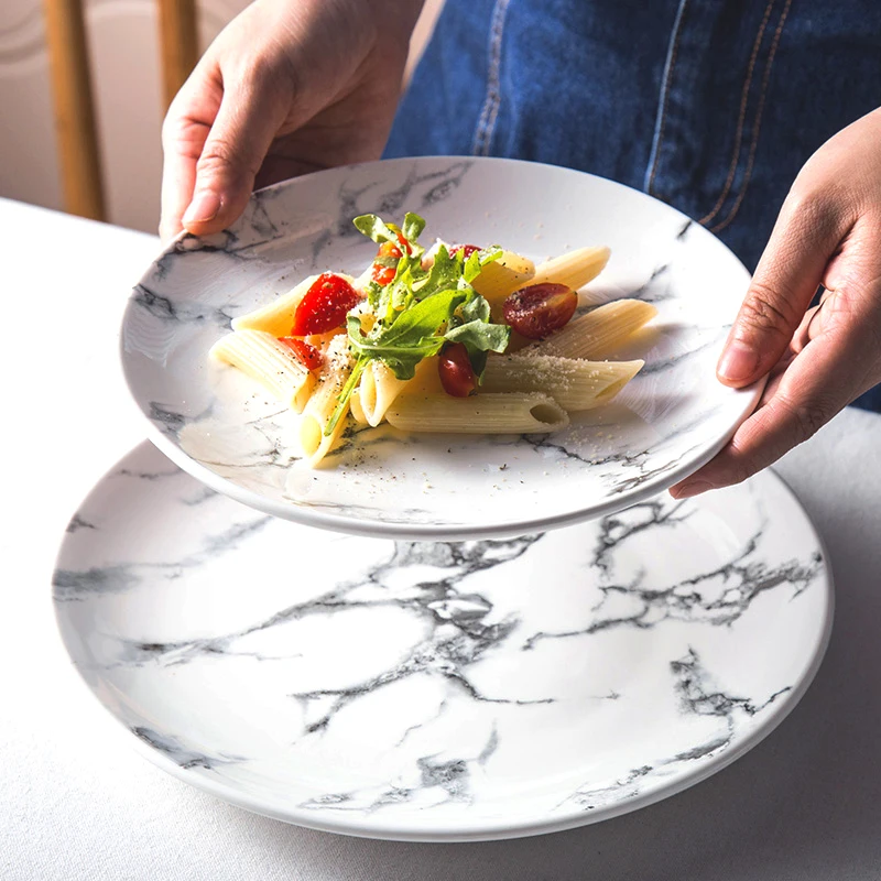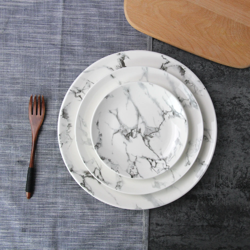 6 pcs set 6 or 8 or 10 inch Marble dinner plates ceramic tableware dinner set marble dinnerware