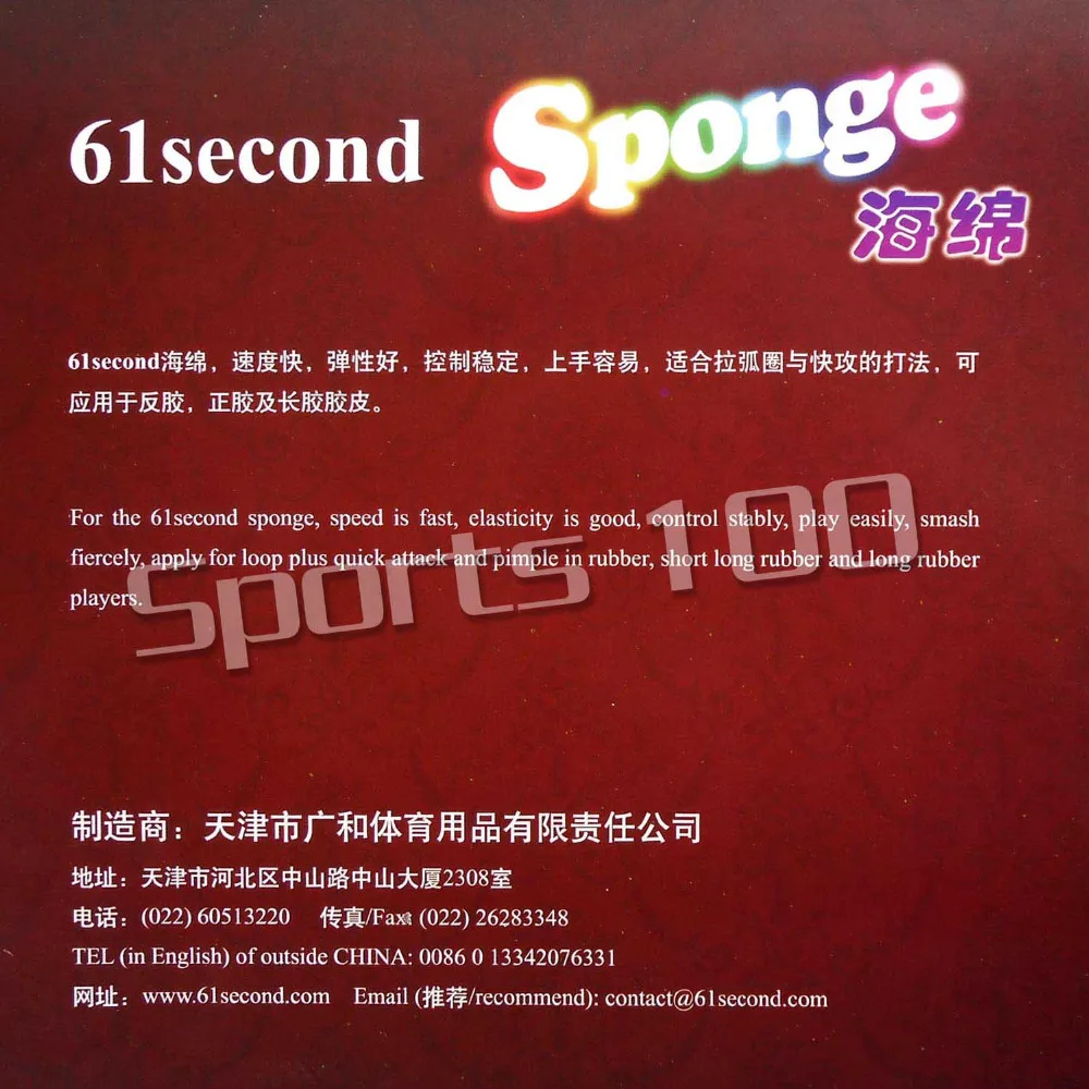 For the 61second sponge, speed is fast, elasticity is good, control stably, play easily, smash fiercely, apply for loop plus quick attack and pimple in rubber, short long rubber and long rubber players.