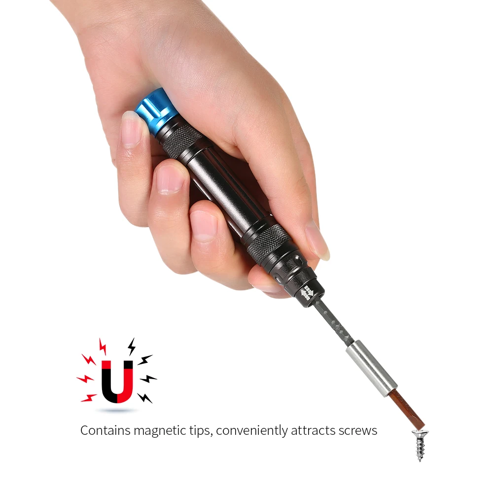 Contains magnetic tips, conveniently attracts screws.
