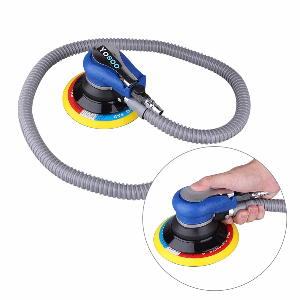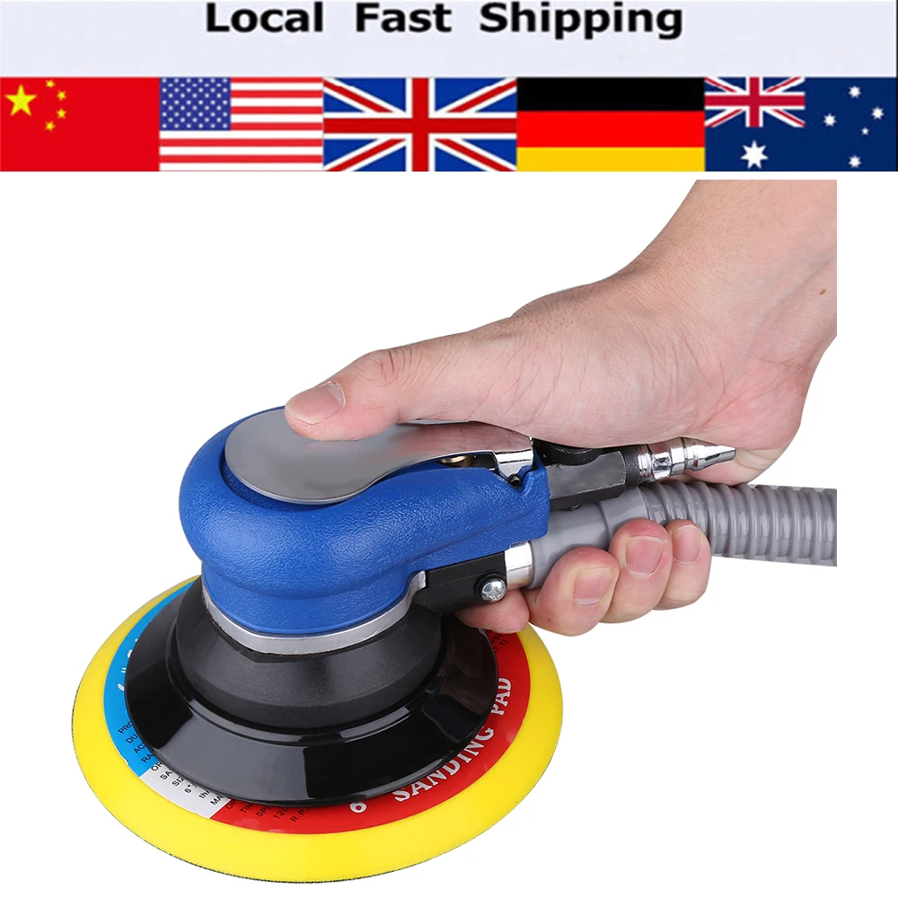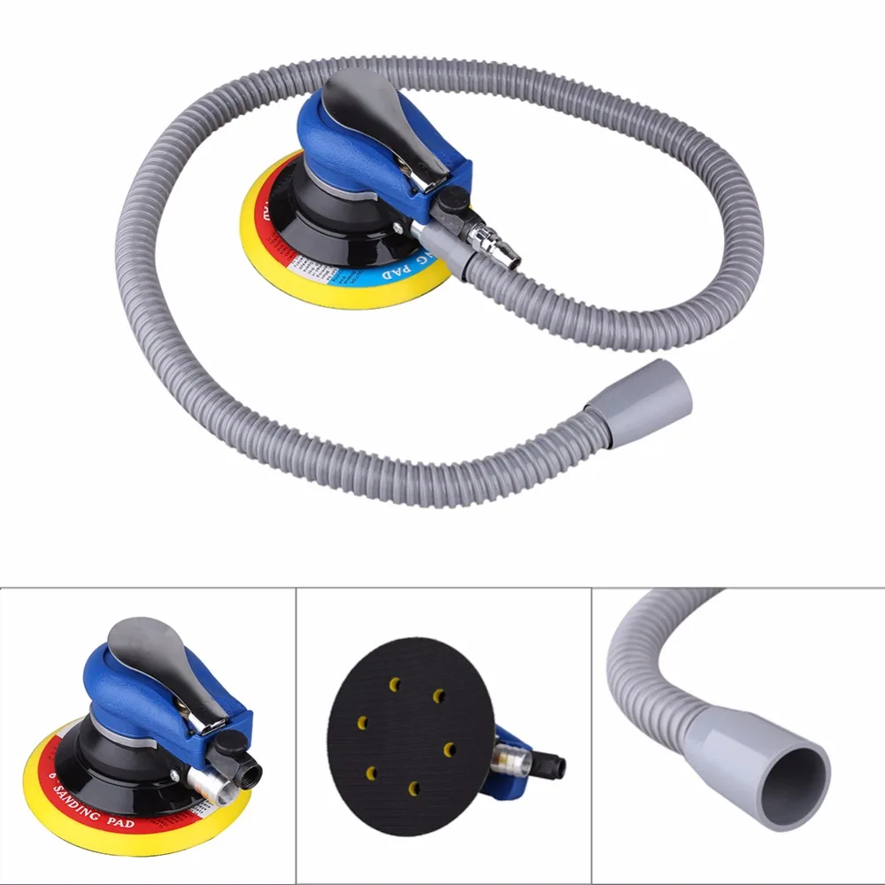 Air Random Orbital Palm Sander for 6inch 150mm Pad Pneumatic Tool with Dust Collection Hose Wrench Connector Polisher Dust Bag