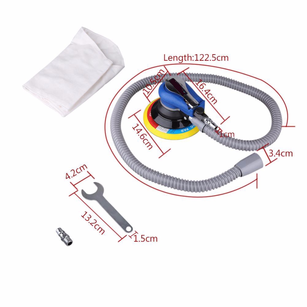 Air Random Orbital Palm Sander for 6inch 150mm Pad Pneumatic Tool with Dust Collection Hose Wrench Connector Polisher Dust Bag