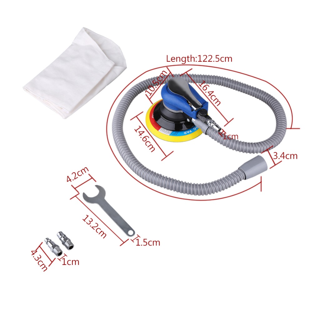 90PSI 6inch/ 150mm Air Random Orbital Palm Sander for Pad Pneumatic Tool with Dust Collection Hose 10000RPM